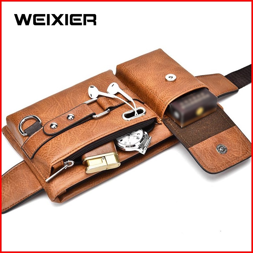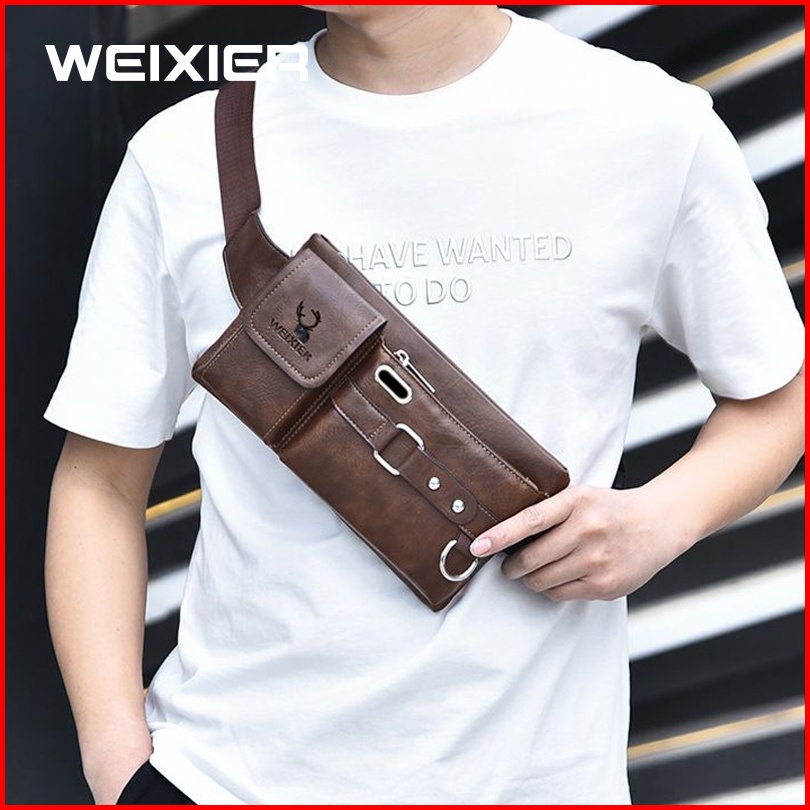 Weixier 8110 Tas Selempang Pria Kulit Waist Bag Anti Air Wx-os