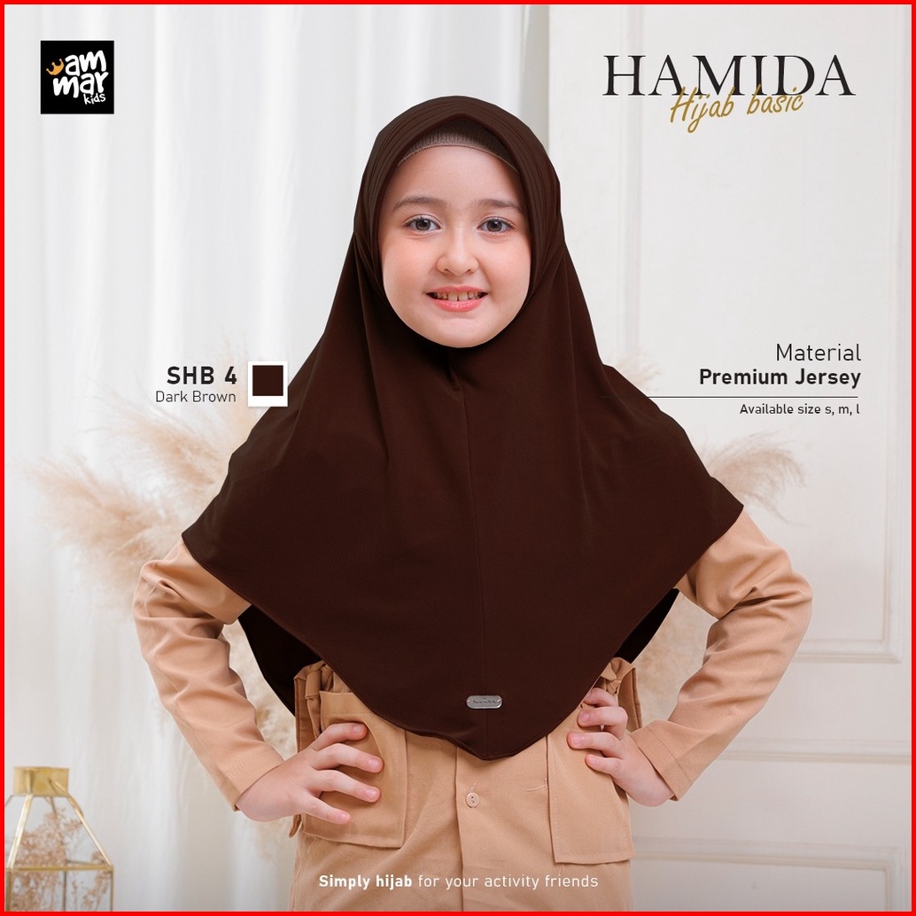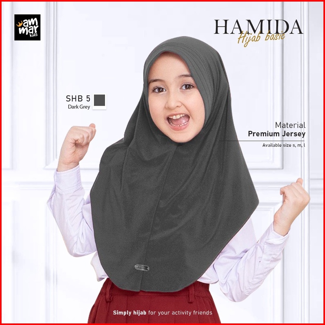Hamida Hijab Basic Kerudung Jilbab Anak Sekolah Brand Ammar Kids Untuk Tk Sd Smp Warna Putih Merah Hitam Bahan Jersey Pr