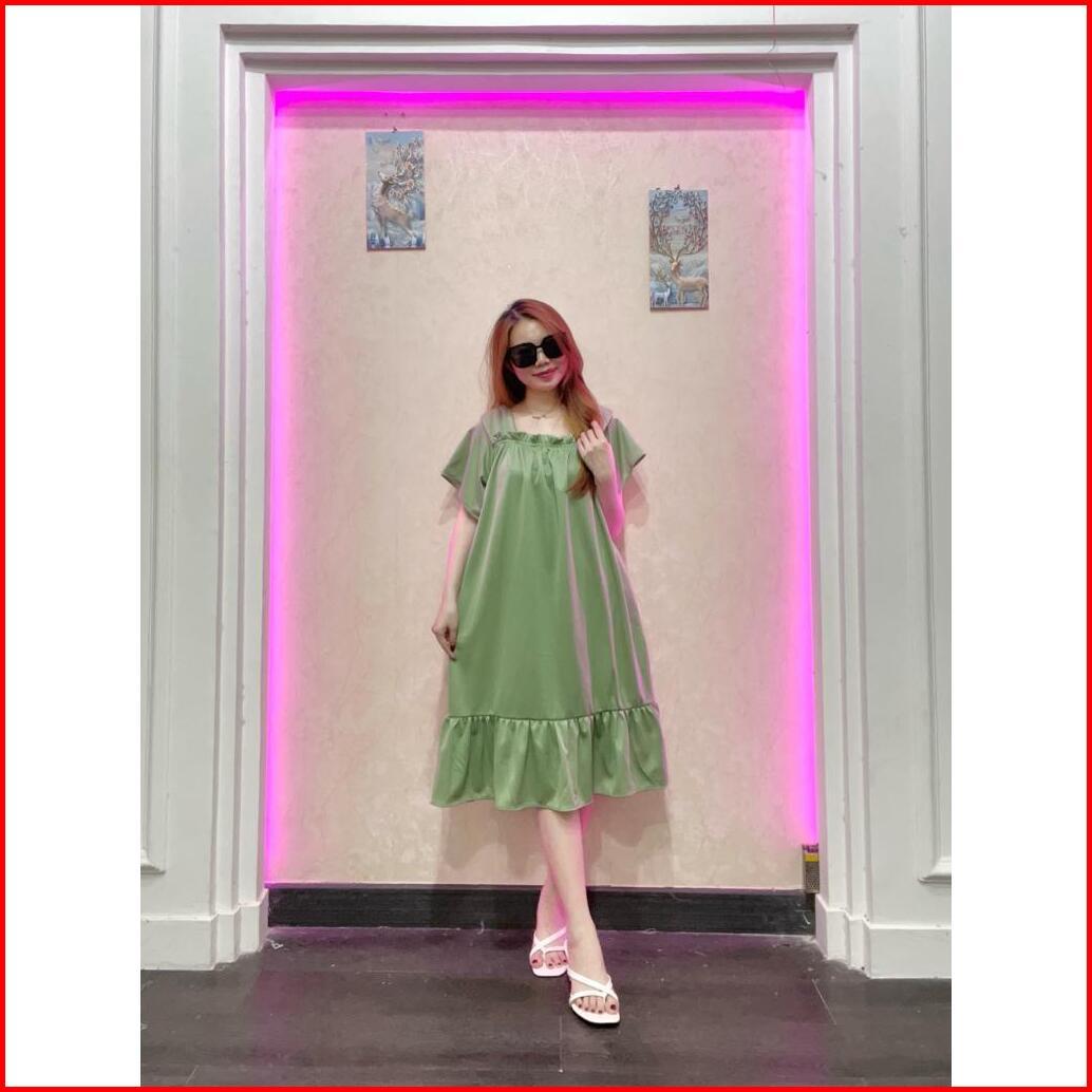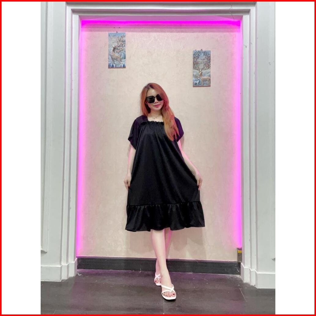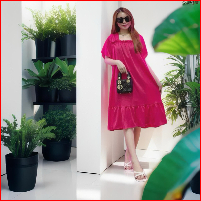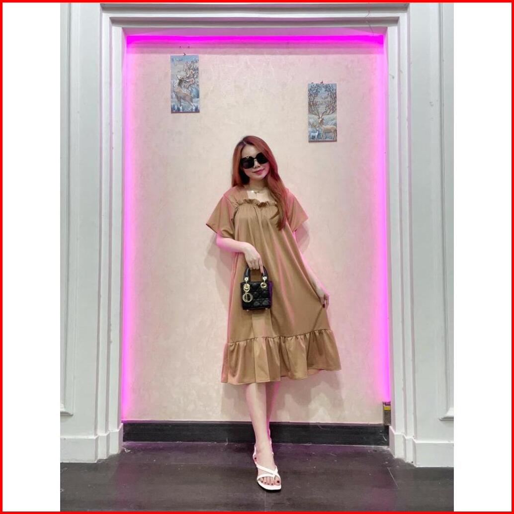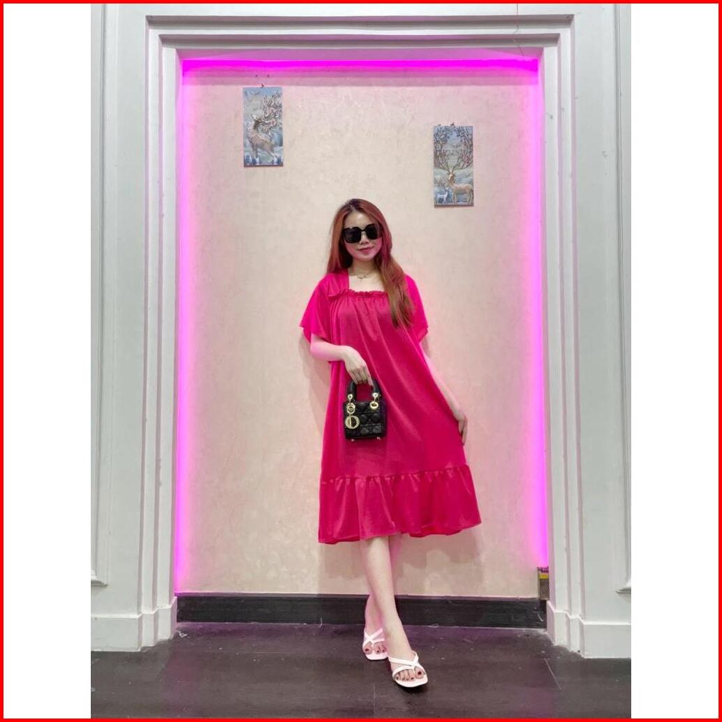 Rd Fashion - Daster Laura Daster Fuji Pendek Cringkle Airflow Polos Bawah Remple Kerut Dada