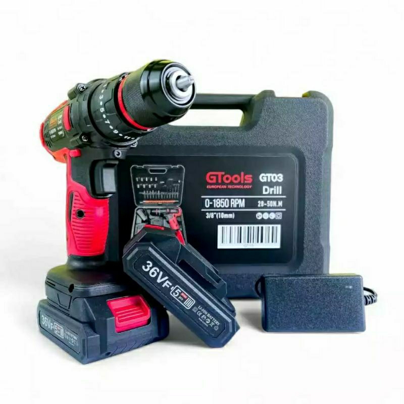 Bor GTOOLS GT03 Cordless 36Vf Mesin Bor 2Batrai 10MM Tembok Beton Kayu