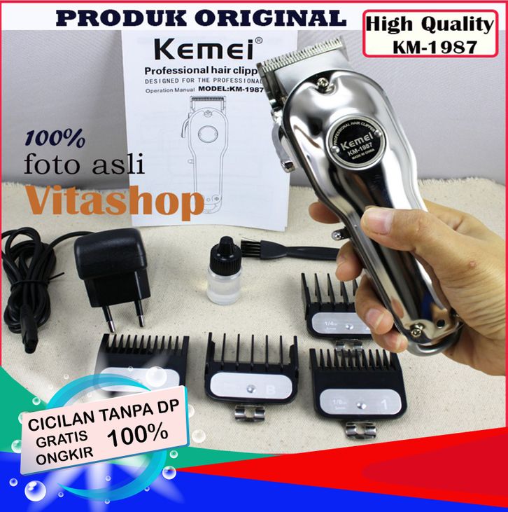 KIRIM ALAT CUKUR RAMBUT KEMEI KM-1987 SILVER HAIR CLIPPER MESIN POTONG RAMBUT