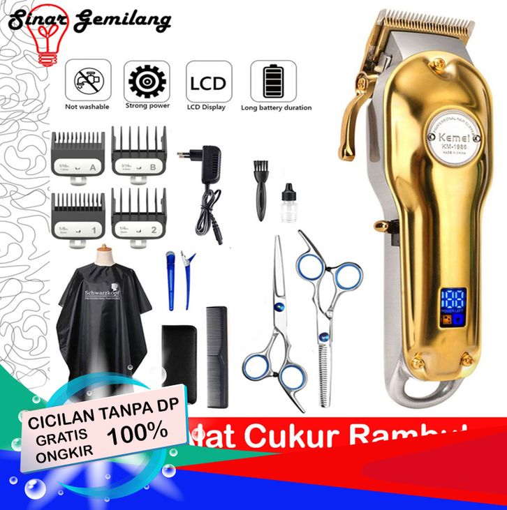 KIRIM PAKET ALAT CUKUR KEMEI KM-1986 GOLD/SILVER ELEKTRIC HAIR CLIPPER MESIN PANGKAS RAMBUT CAS