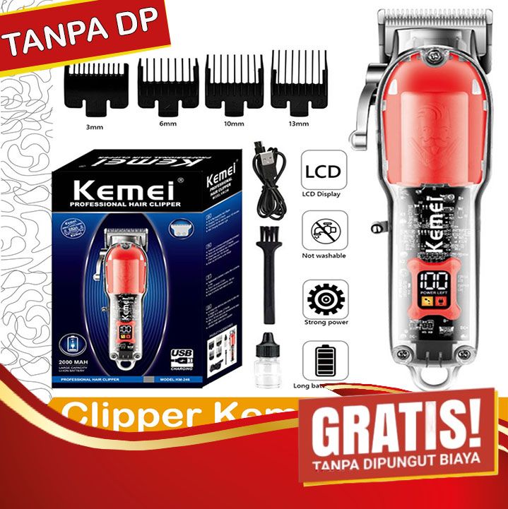 KIRIM CLIPPER KEMEI KM-246 LCD DISPLAY ALAT CUKUR BARBERSHOP MESIN POTONG RAMBUT CAS