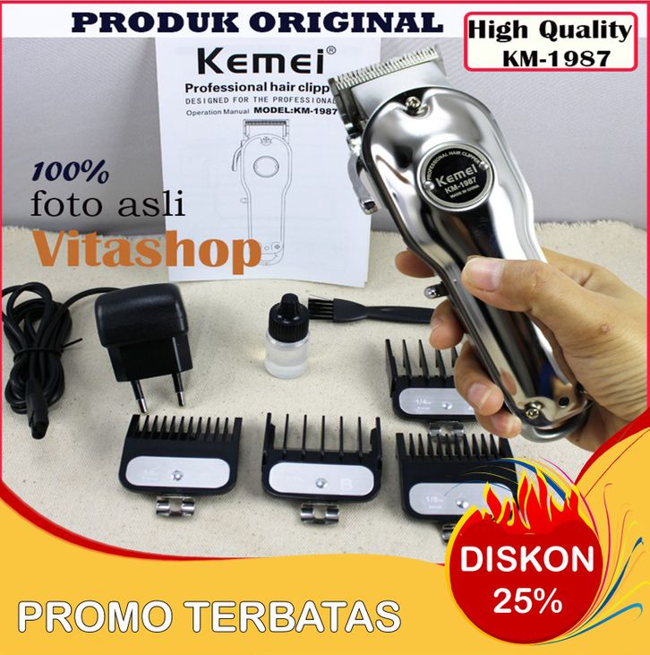 KIRIM ALAT CUKUR RAMBUT KEMEI KM-1987 SILVER HAIR CLIPPER MESIN POTONG RAMBUT