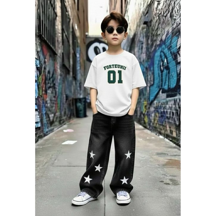 Setelan Skena Jeans Anak Laki Laki Perempuan 1-7 Tahun Motif Keren Kekinian Terbaru Baju Lebaran Anak Cowok Cewek 2026