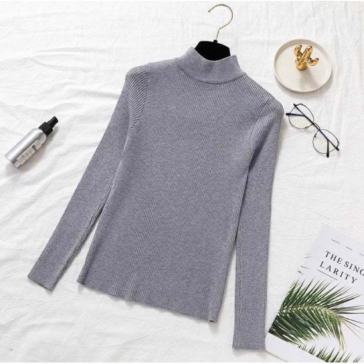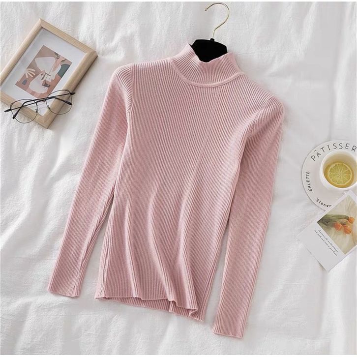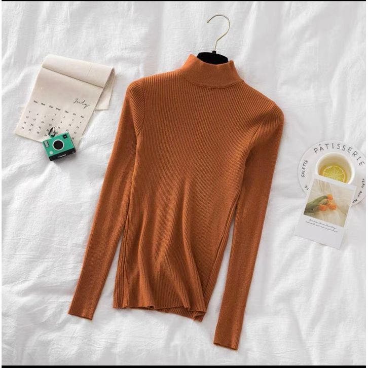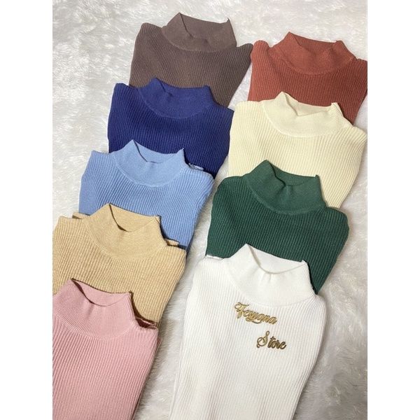 Atasan Rajut Cewek Kaos Manset Import Kerah Turtleneck Baju Inner Basic Casual Modis Lengan Panjang Tebal Halus
