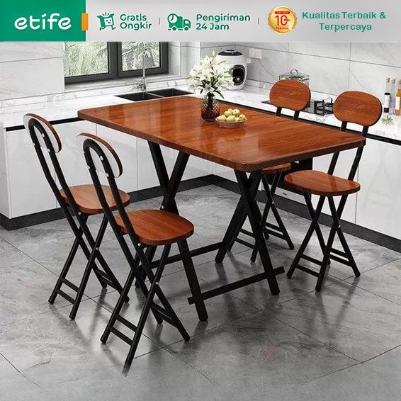 Meja Makan Lipat Set 4 Kursi 100x60CM/Meja Makan Lipat / Meja Makan Portable