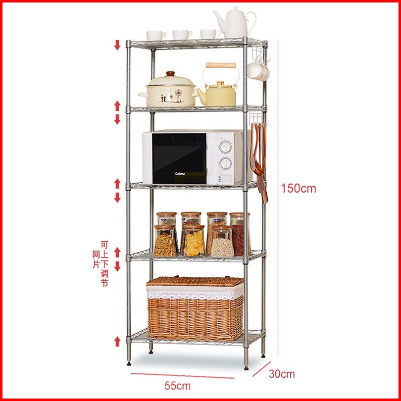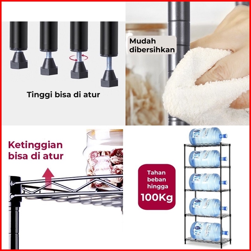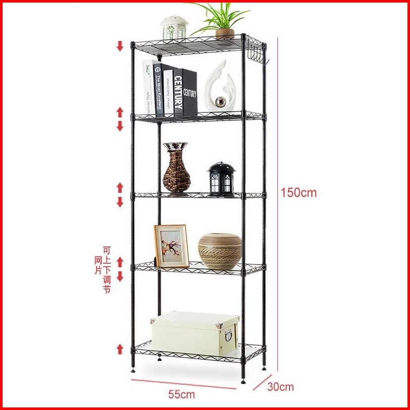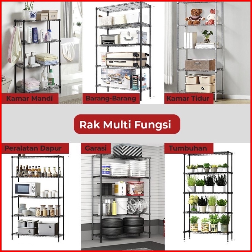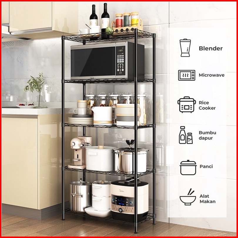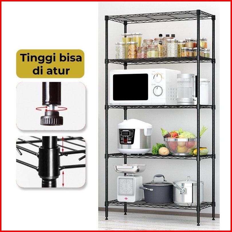Zenrak Penyimpanan 5 Tingkat Stainless Hitam Rak Dapur Ruang Tamu Kamar Mandi Sepatu Rak Gudang