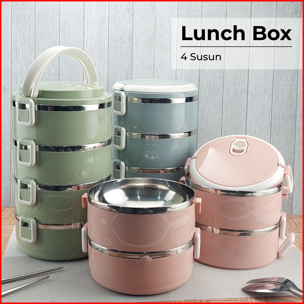 Rantang Lunch Box 4 Susun Polos Lucu Elegan Tempat Bekel Makanan Box