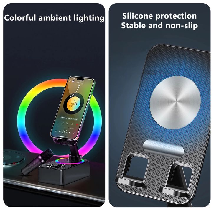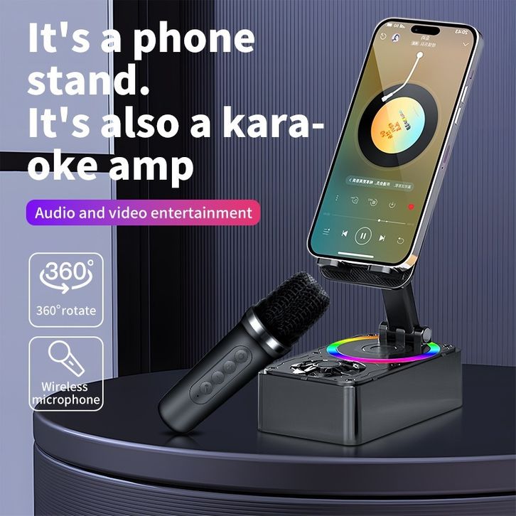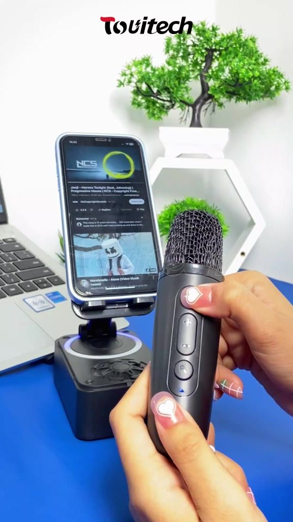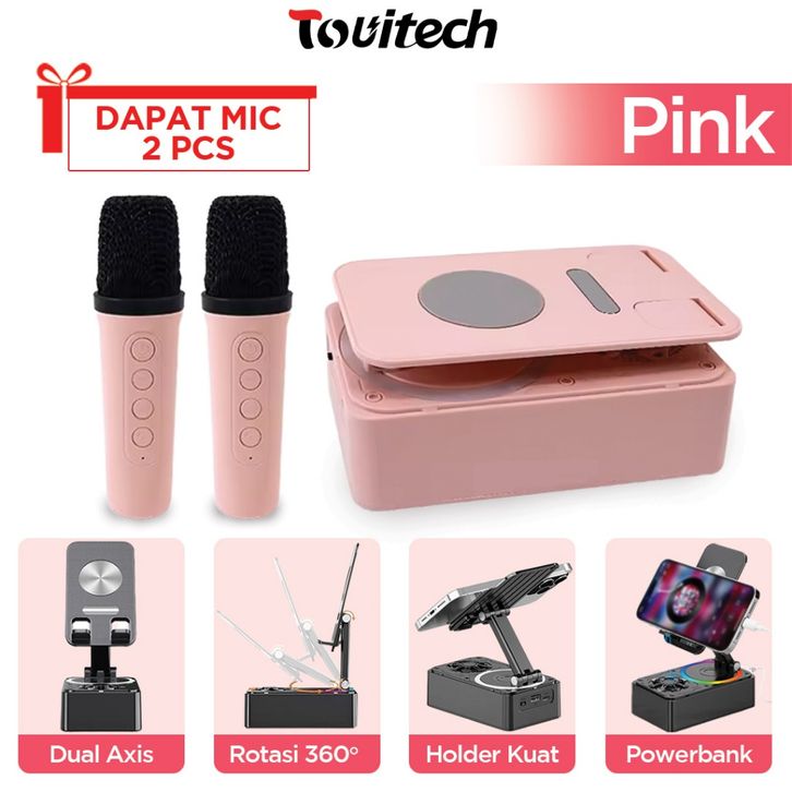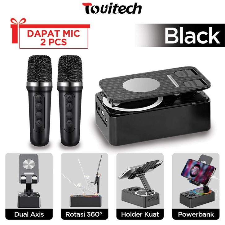 Speaker bluetooth powerbank phone holder stereo mic karaoke portable bms18 TOUITECH 5IN1