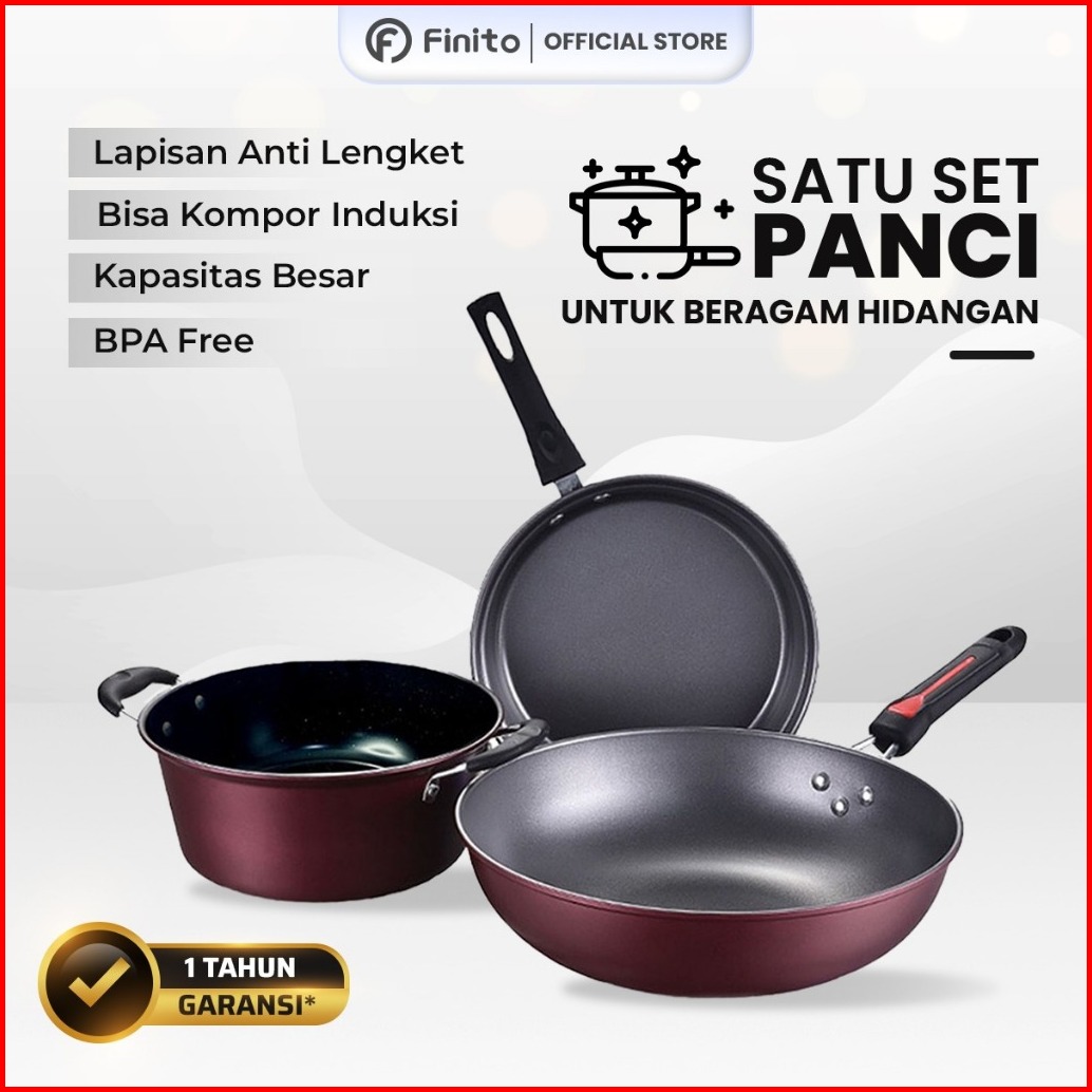 Panci Dan Wajan Penggorengan Teflon Set Isi 3 Pcs Dan Bisa Satuan Tanpa Tutup
