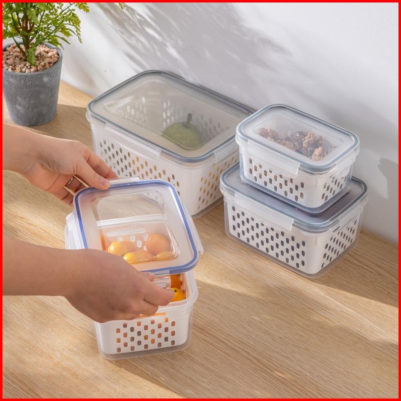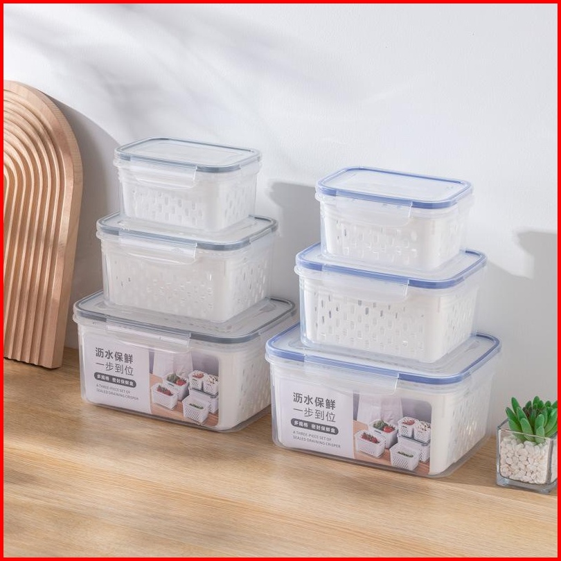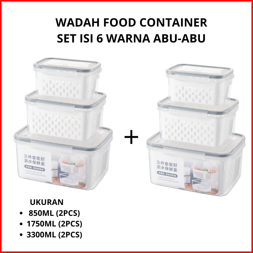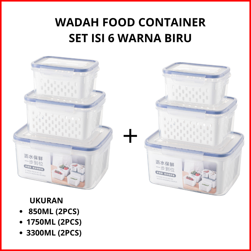 Zavanese Wadah Food Container Serbaguna Penyimpanan Makanan Dengan Saringan Kedap Udara Anti Tumpah Set Isi 3 Dan 6 Uk 8