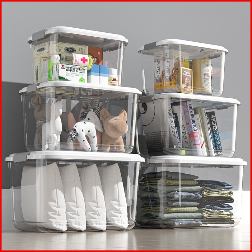 Zenkeranjang Penyimpanan Transparan Segel Baju Mainan Dengan Tutup Box Storage Multifungsi Kotak Plastik
