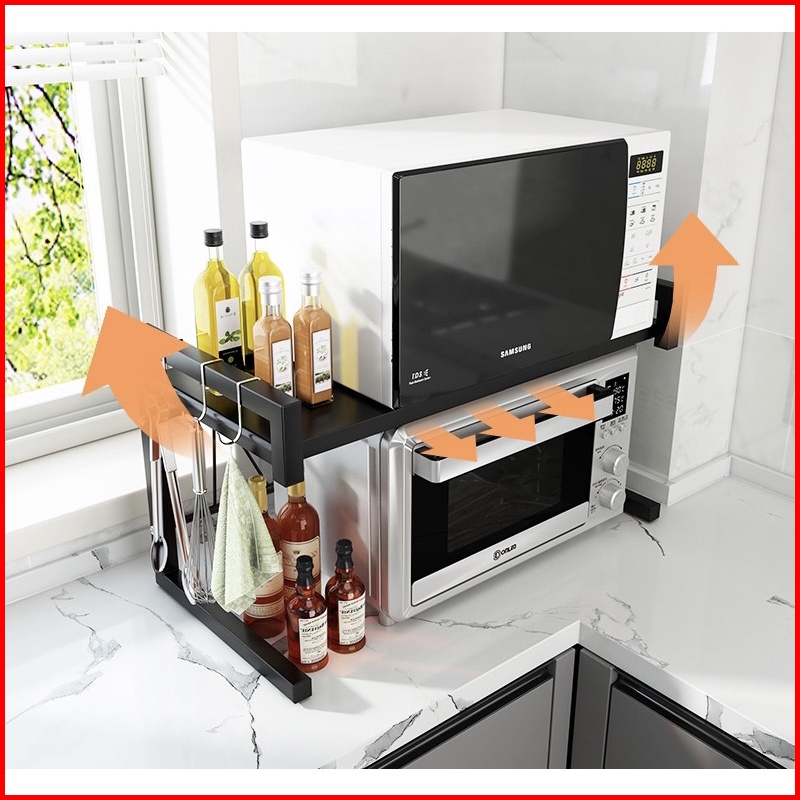 Zenrak Dapur Microwave Rak Serbaguna Adjustable Rak Multifungsi Stainless Steel Rak Penyimpanan
