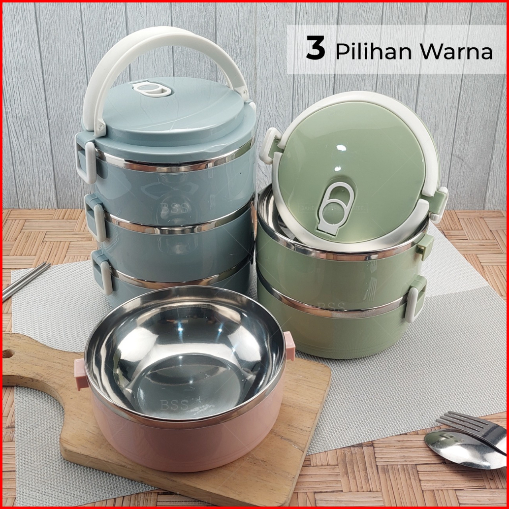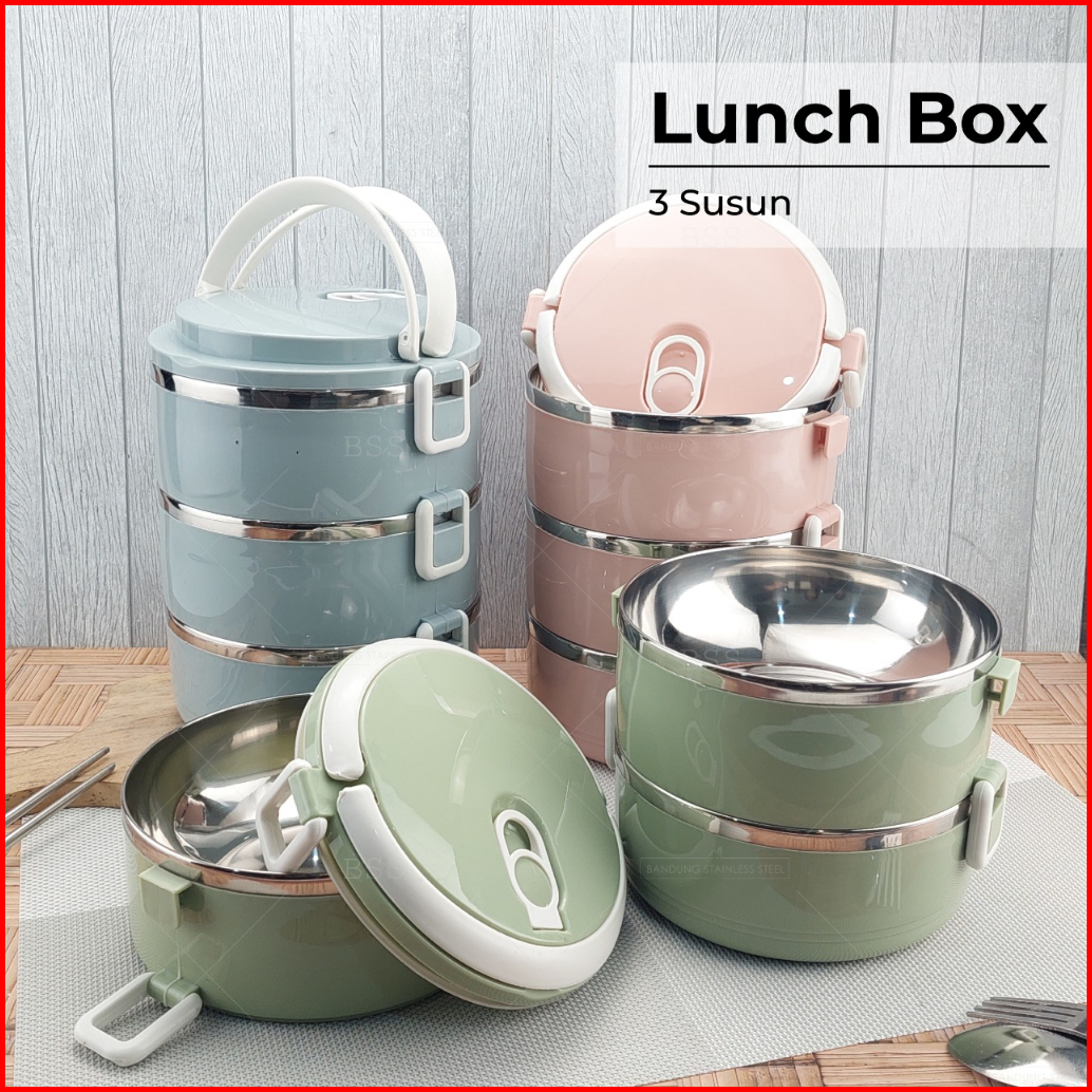 Rantang Lunch Box 3 Susun Polos Lucu Elegan Tempat Bekel Makanan