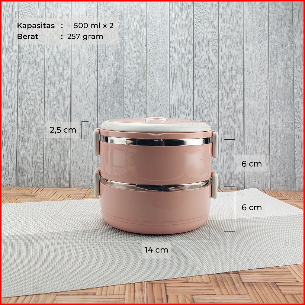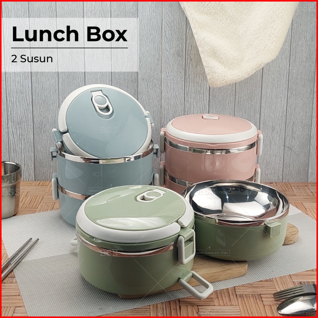 Rantang Lunch Box 2 Susun Polos Lucu Elegan Tempat Bekel Makanan