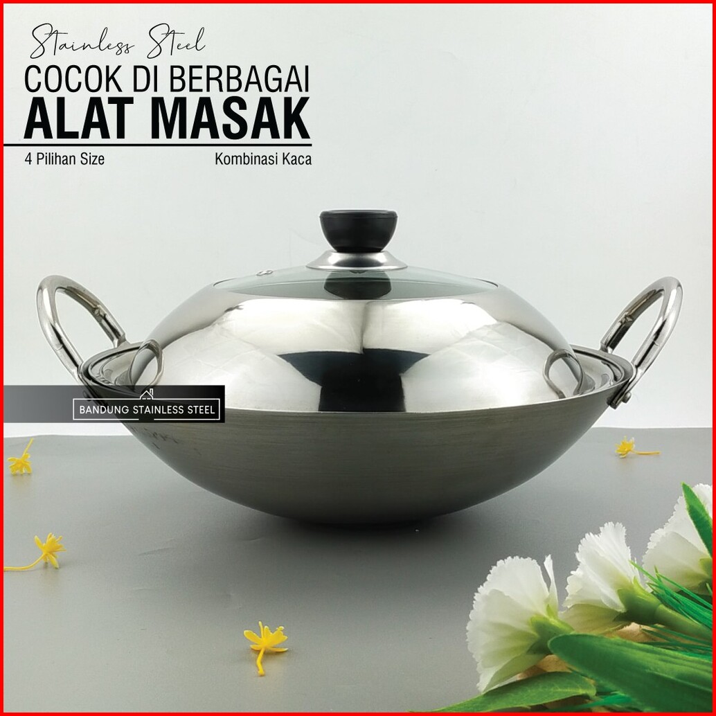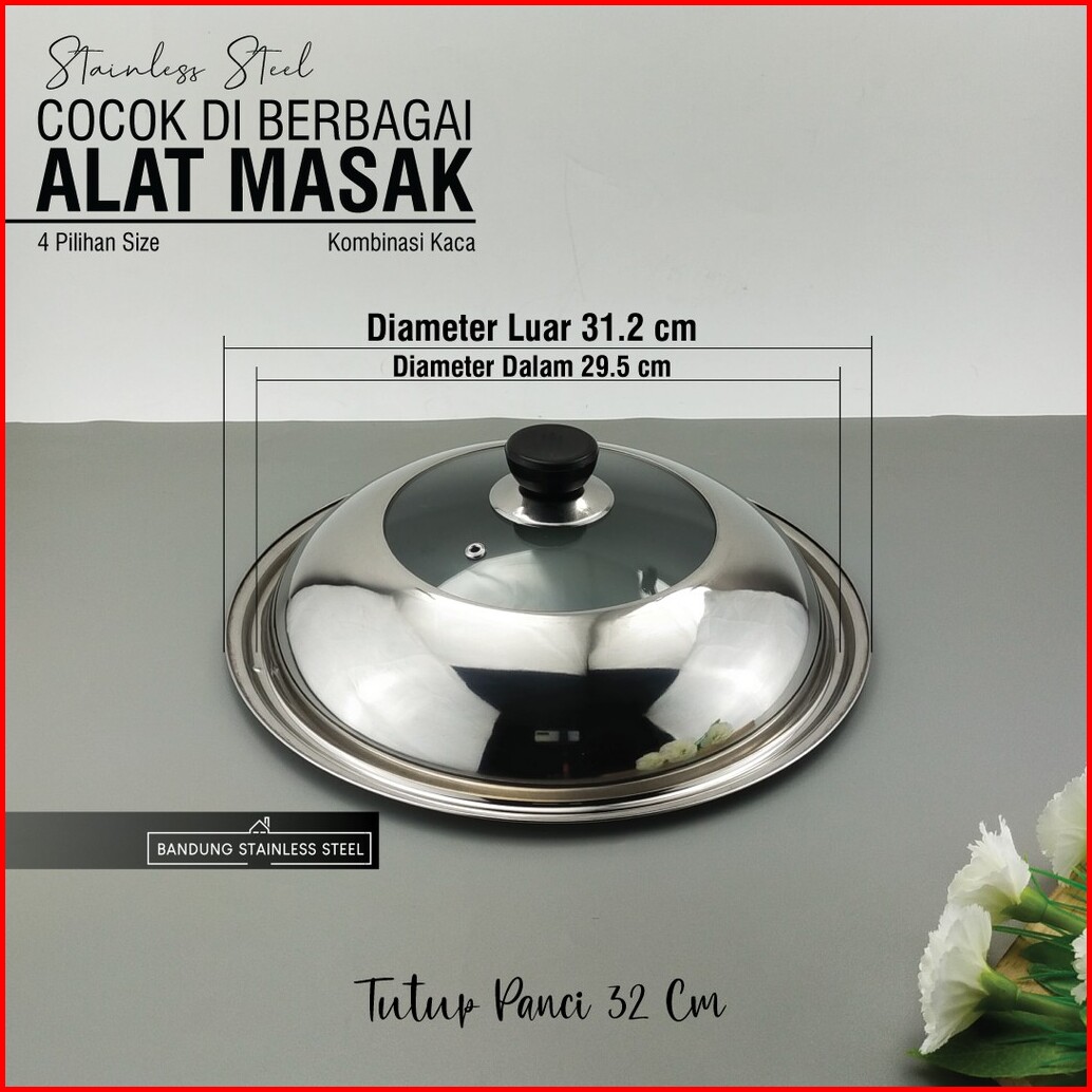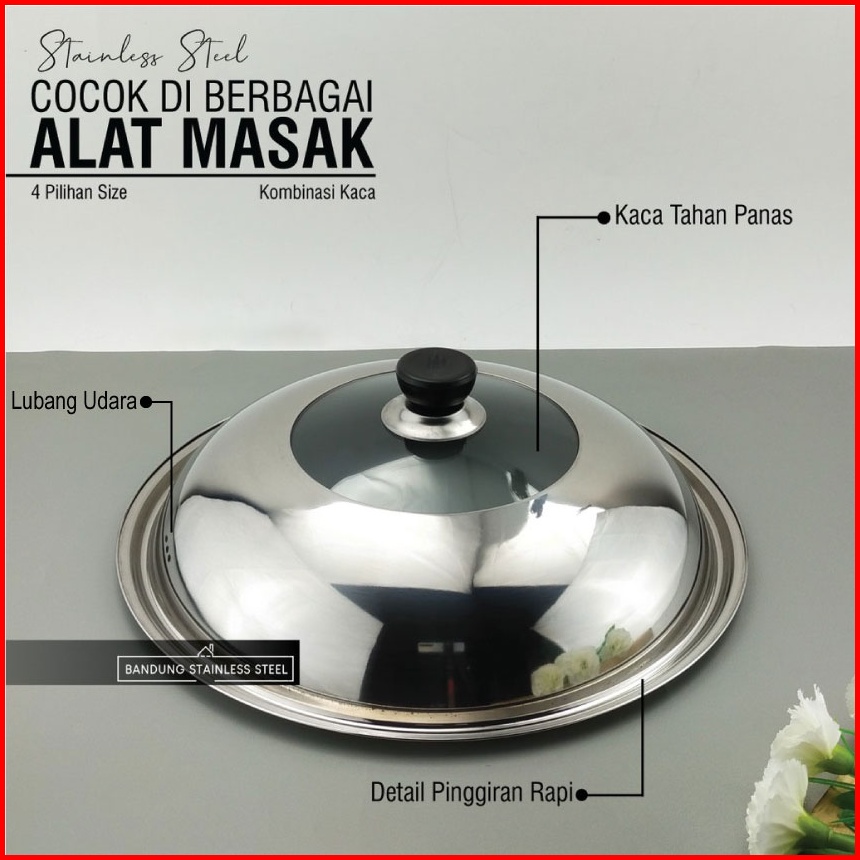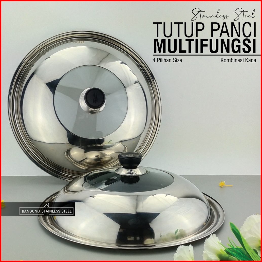 Tutup Panci Multifungsi Stainless Kaca Wajan Kuali Penggorengan Steamer Kukus Goreng 4 Ukuran Murah