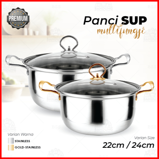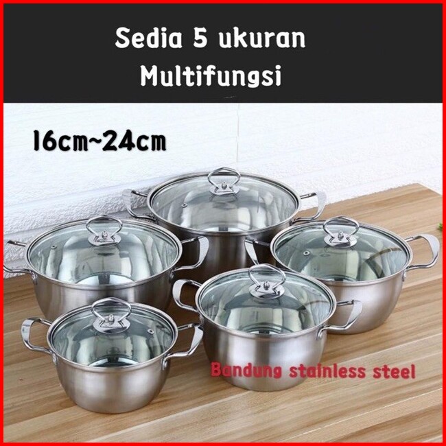 Panci Sup Soup Pot 22cm 24cm Stainless Steel Tutup Kaca Murah Gagang Stainless