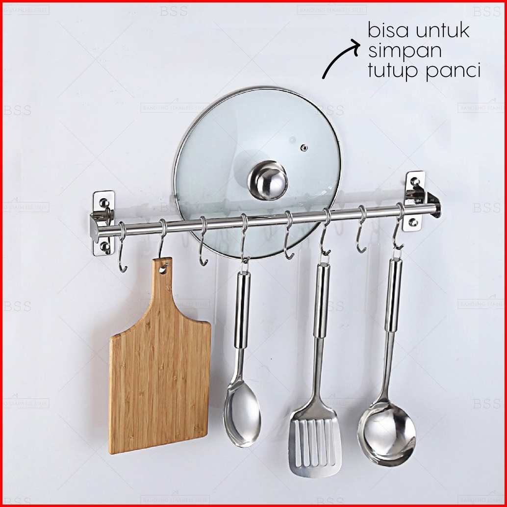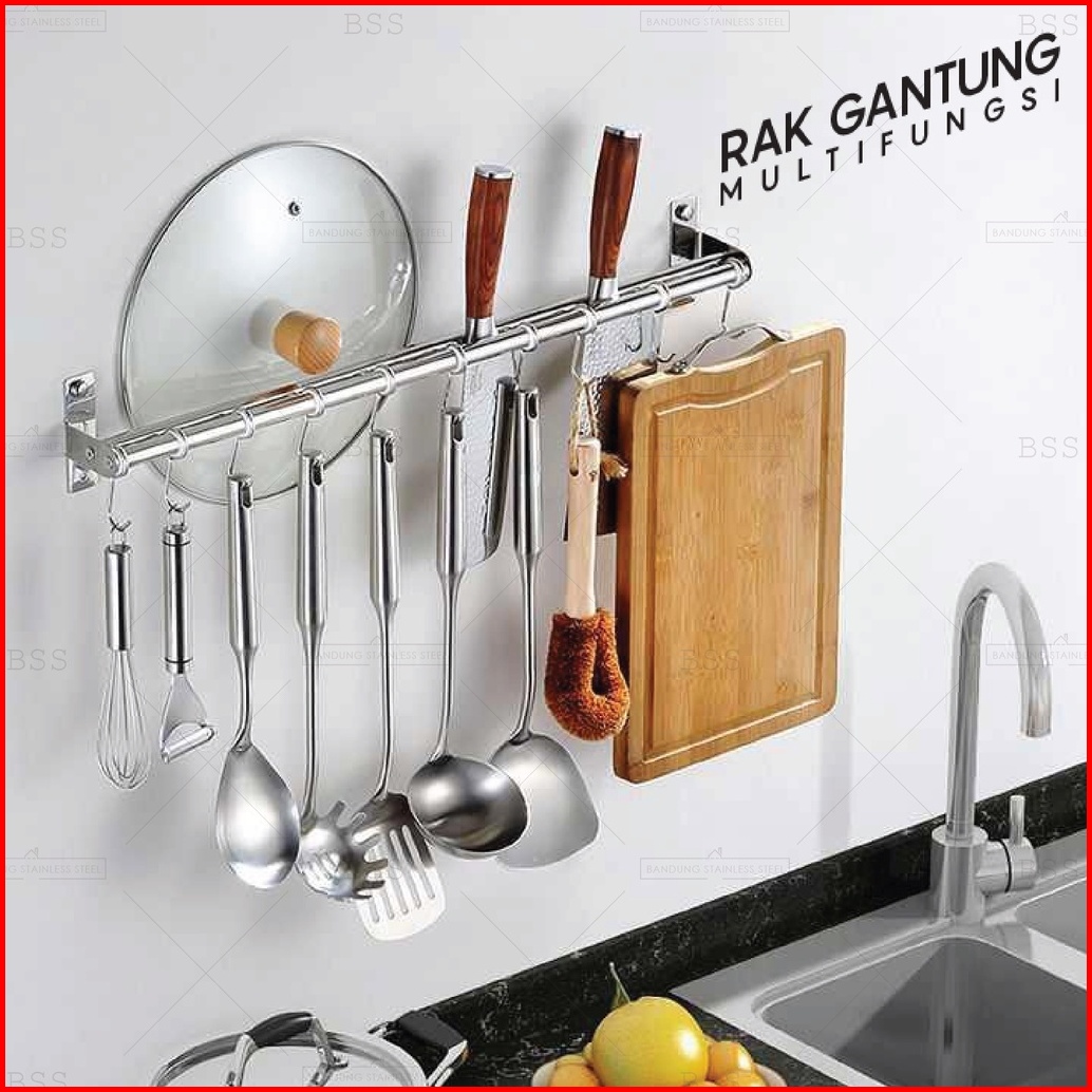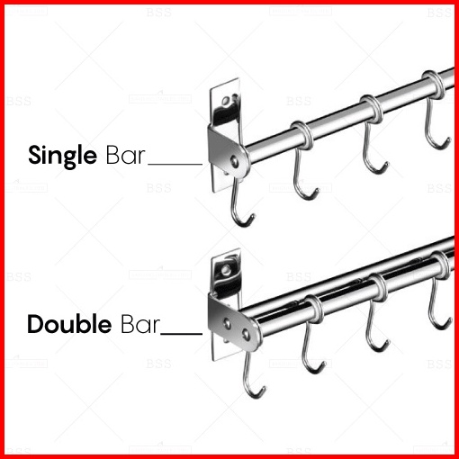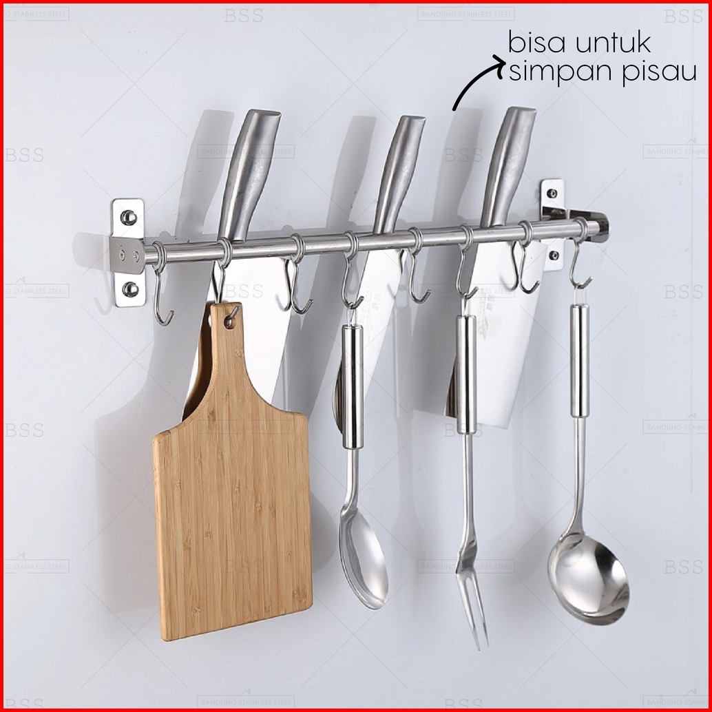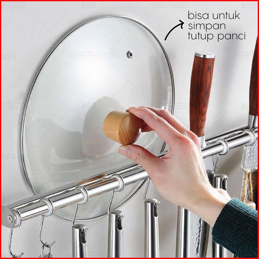 Kitchen Bar 60cm 80cm 100cm Single Double Gantungan Rak Dapur Pisau Panci Stainless