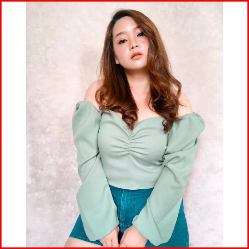 Baju Atasan Sabrina Irise Lola Sabrina Crop Top Blouse Blus Korean Lengan Panjang Pendek Tangan Balon Kerut Serut Jumbo