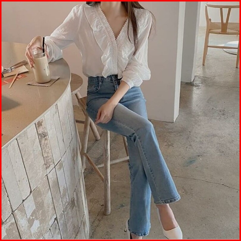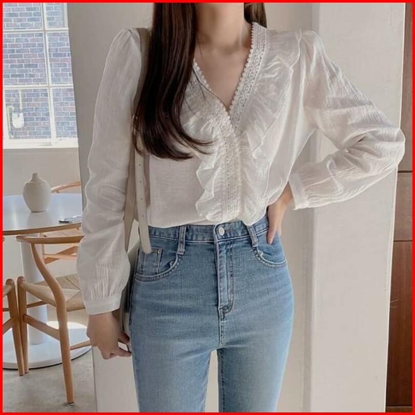 Seona Blouse Atasan Wanita Korean Style Crinkle Import Mix Lace Outfit Casual