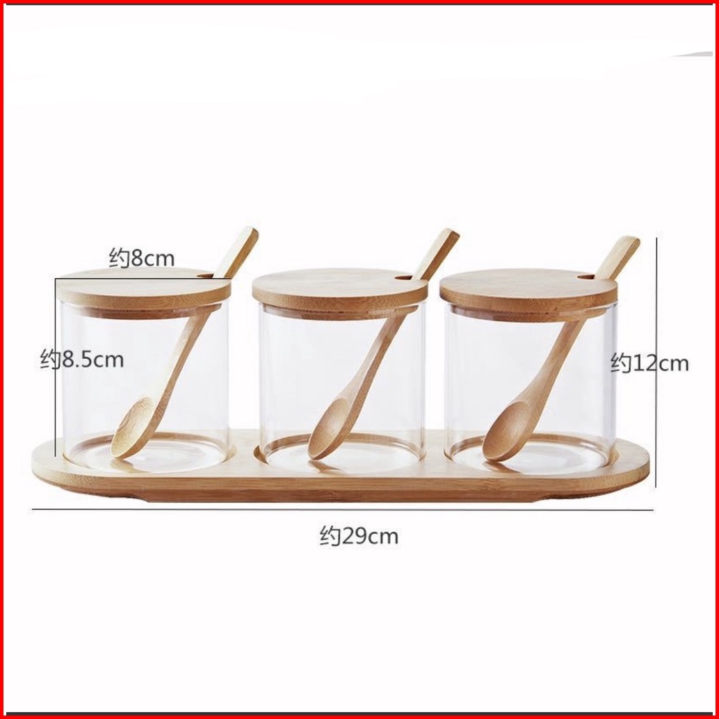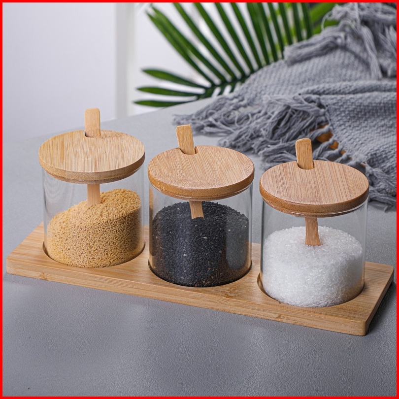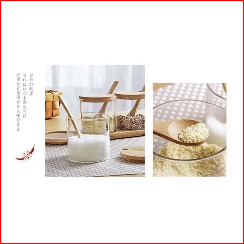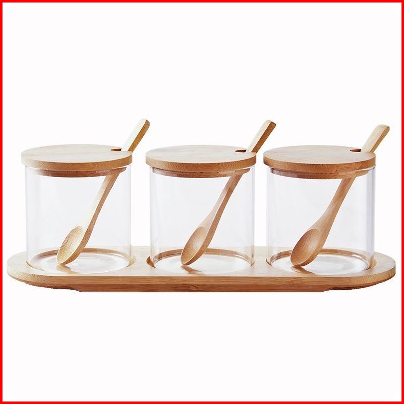 Zentoples Bumbu Kaca Kayu Rak Bumbu Sendok Kayu Tempat Penyimpanan Bumbu