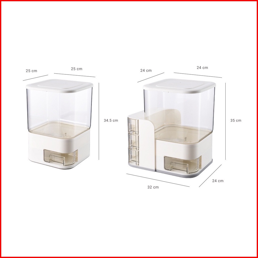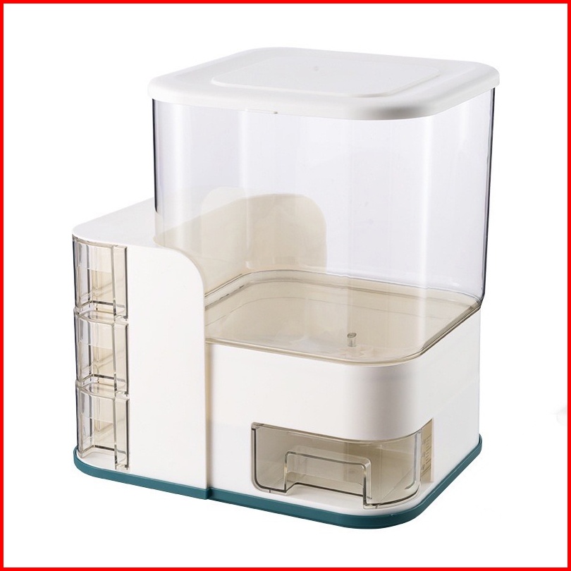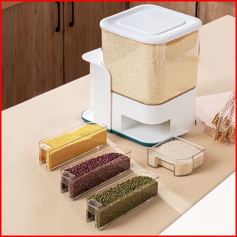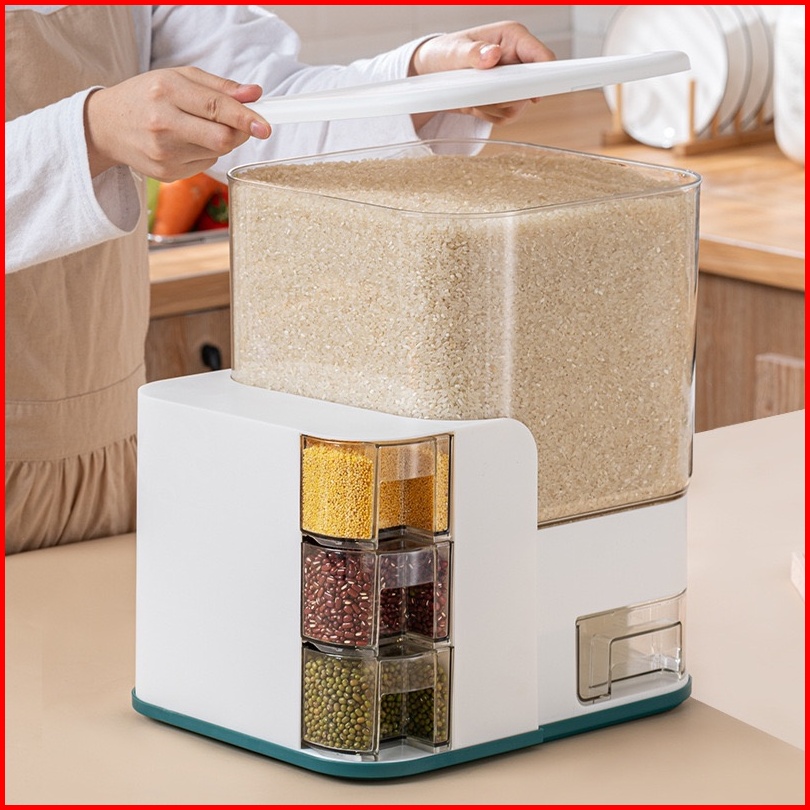 Zendispenser Beras Transparan 12.5kg 10kg Dengan 3pcs Wadah Bumbu