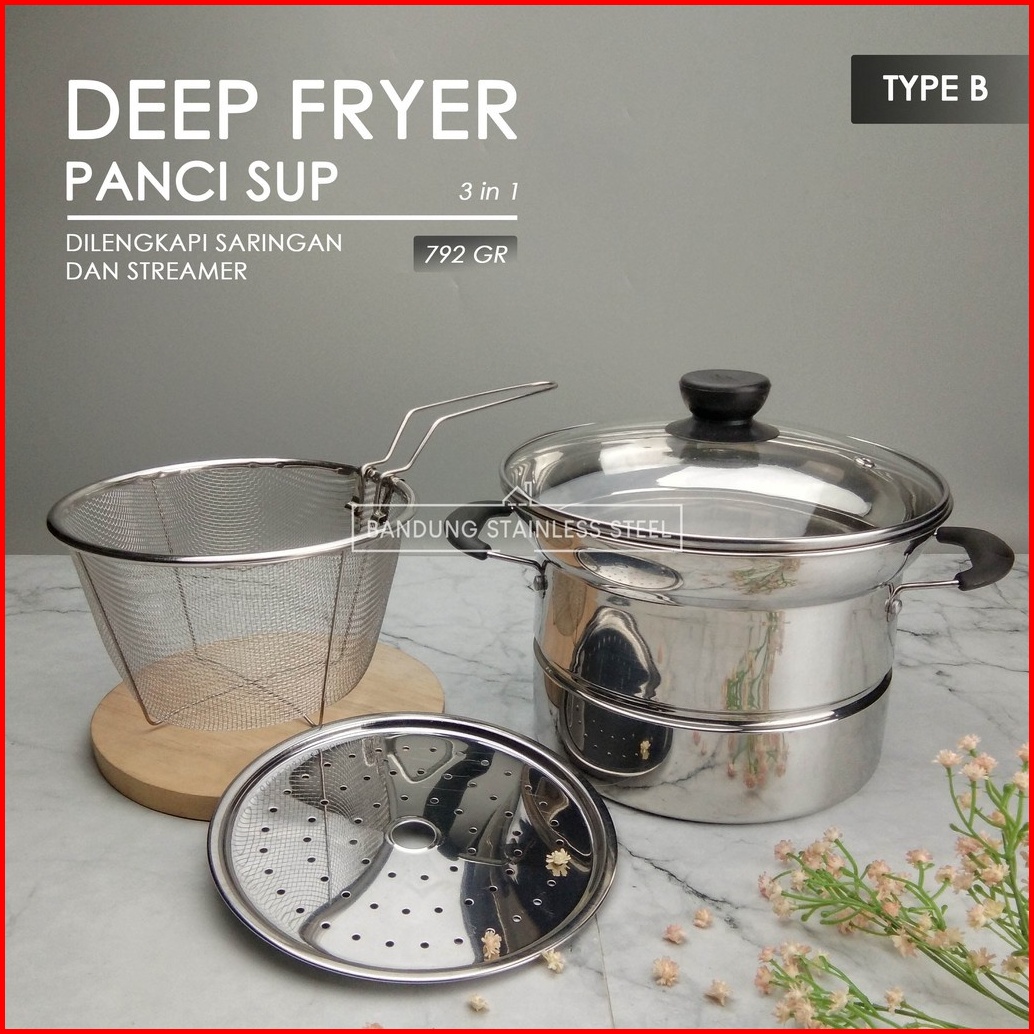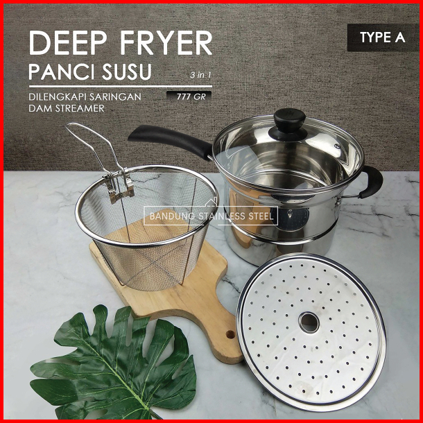 Panci Susu Deep Fryer Goreng Kukus Masak Steamer Saringan Multifungsi 3in1 22cm