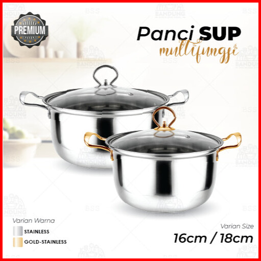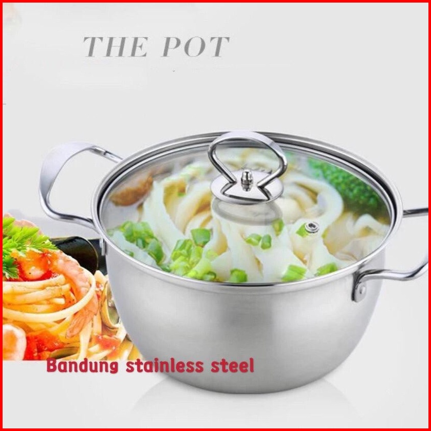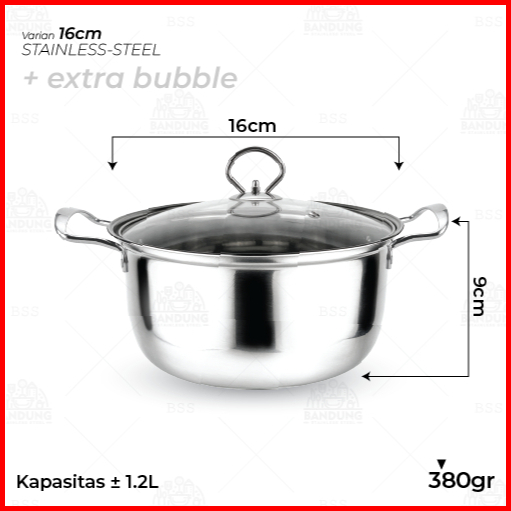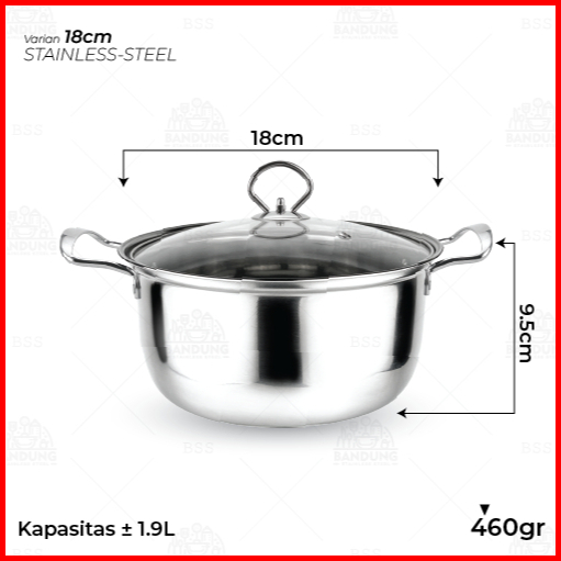 Panci Sup Soup Pot 16cm 18cm Stainless Steel Silver Tutup Kaca Murah Kecil
