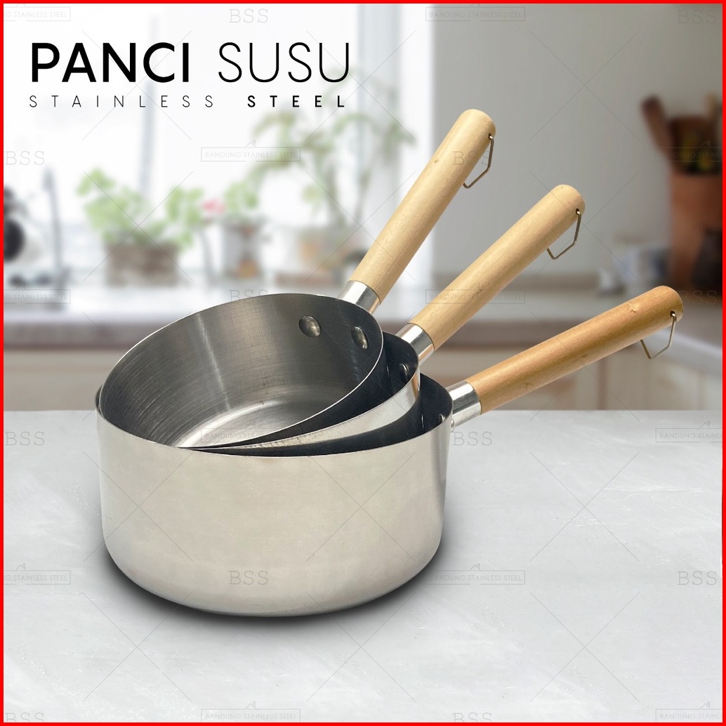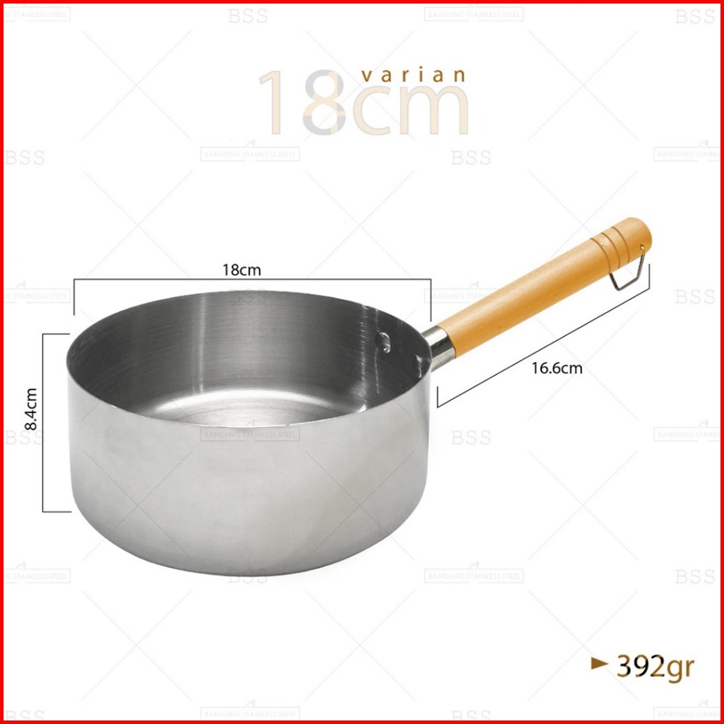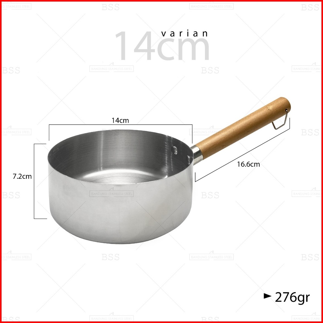Panci Susu Milk Pot Pegangan Kayu 14cm 16cm 18cm Stainless Steel Murah