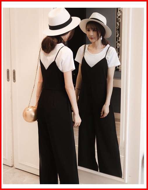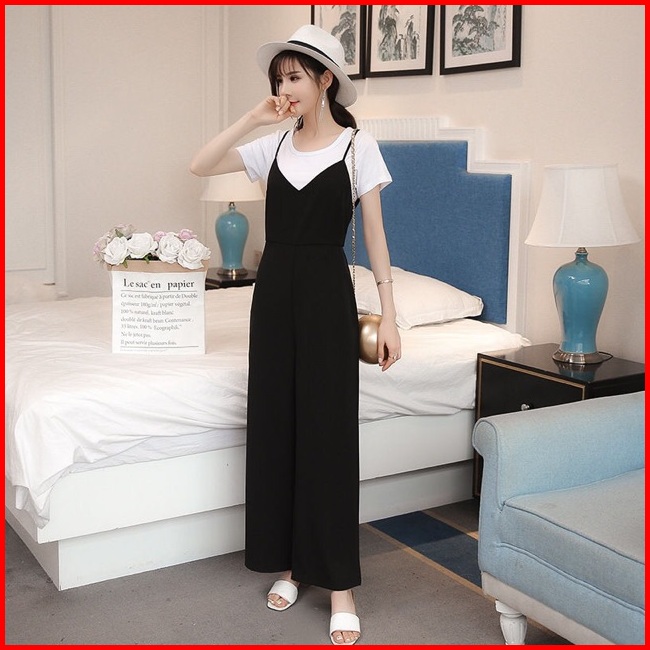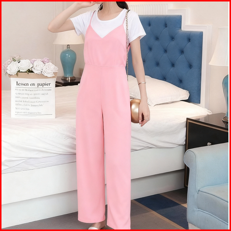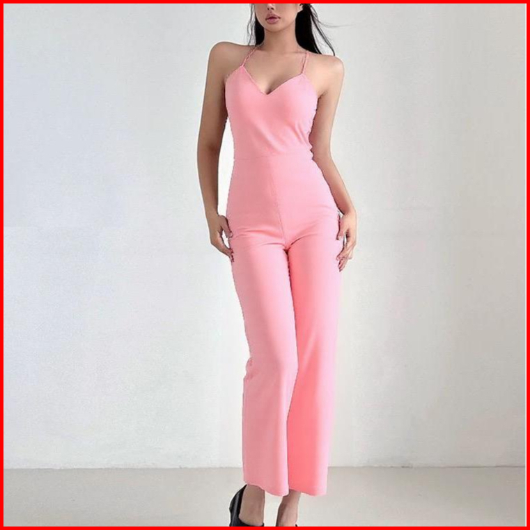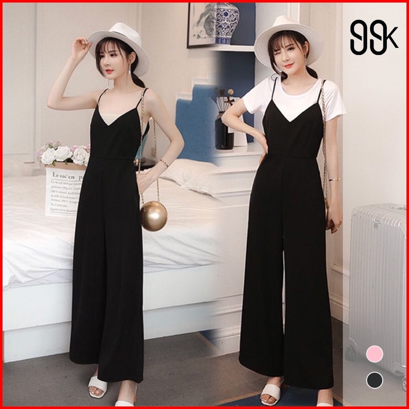 99koutlet Jumpsuit Casual Long Wide Pants Plain Spaghetti Strap V Neck S M L Xl 1020