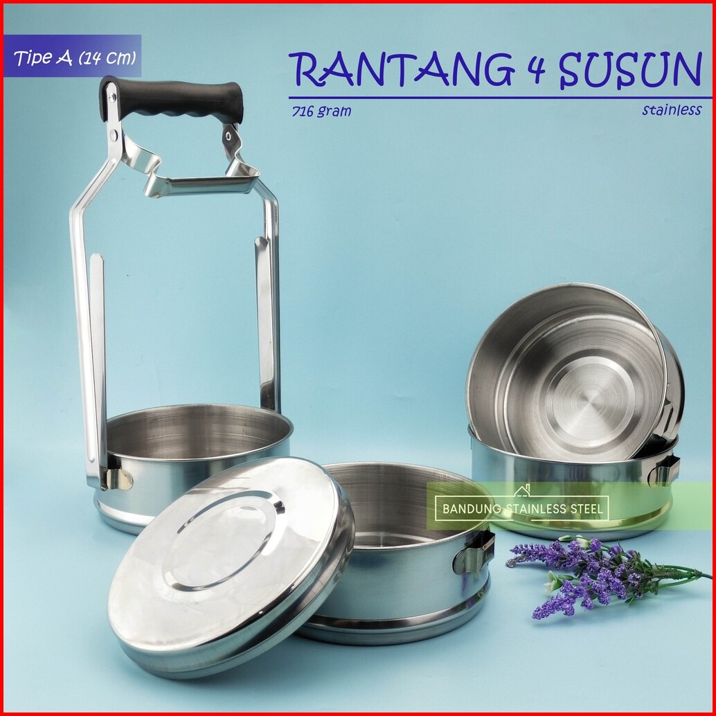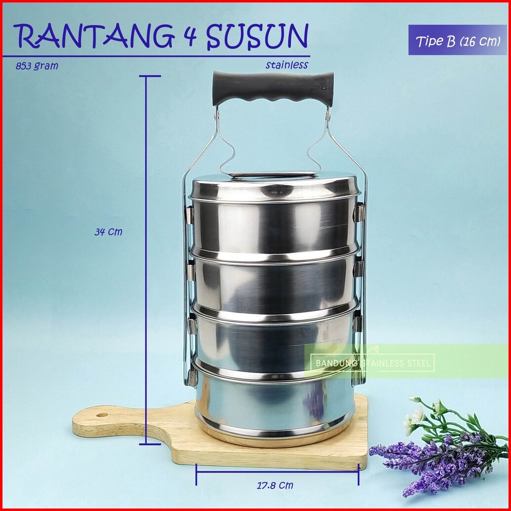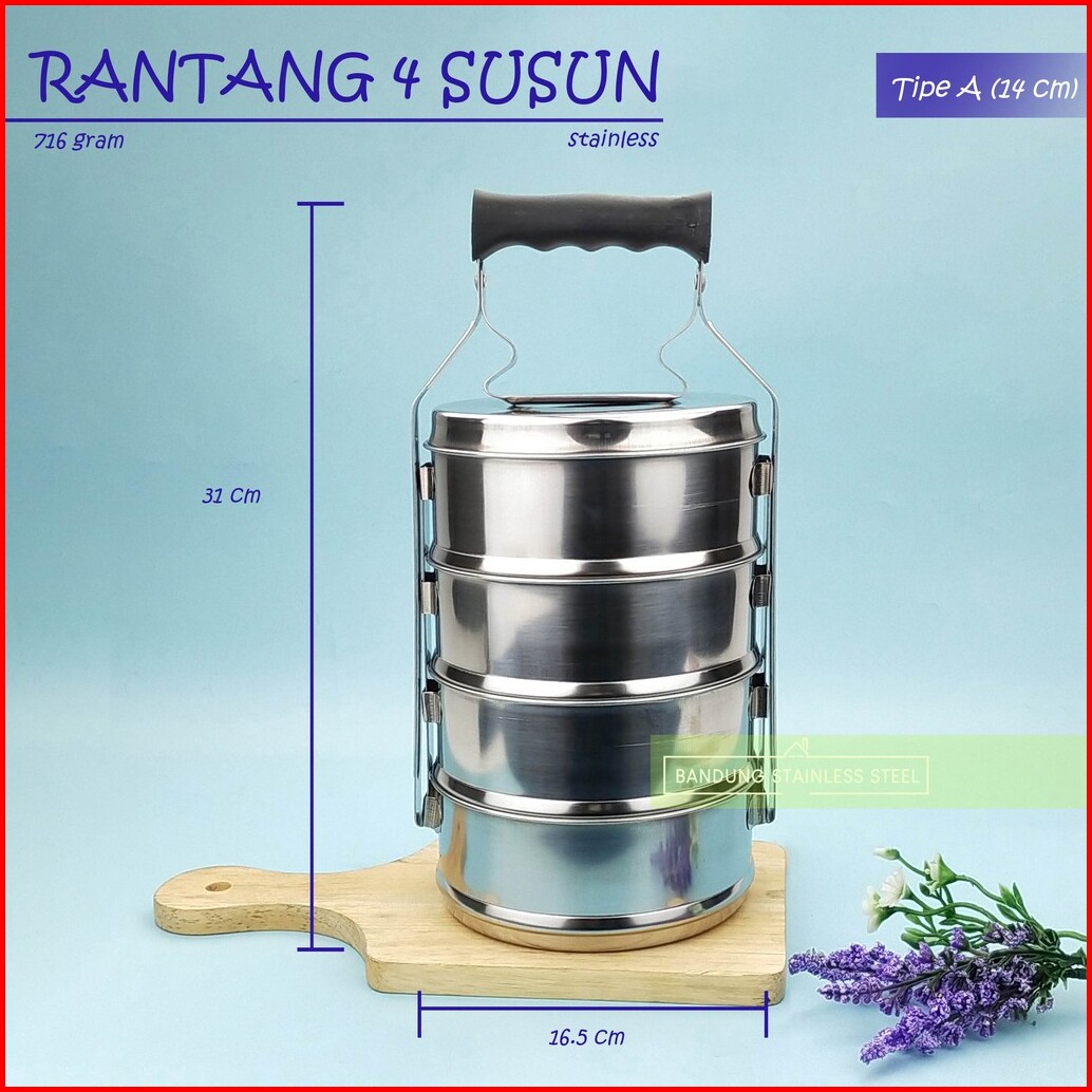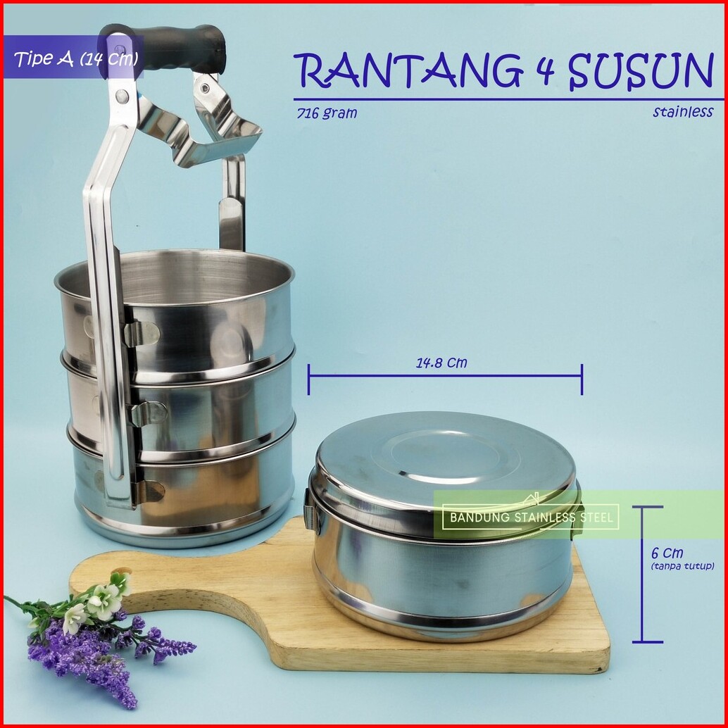 Rantang Stainless Steel 4 Susun 14cm 16cm Kapasitas 3.2l 4.8l
