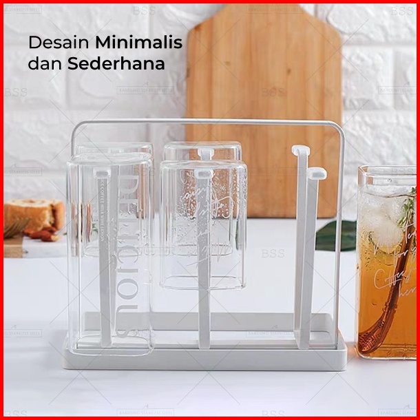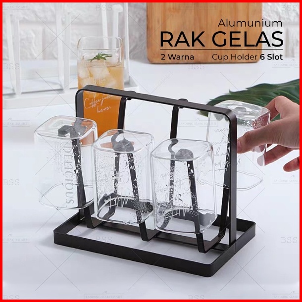 Rak Gelas Minimalis Tempat Cangkir Rak Dapur Organizer Cup Holder 6 Slot