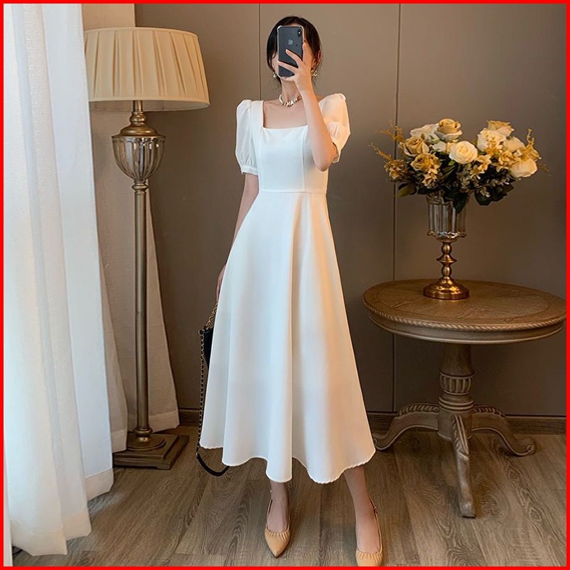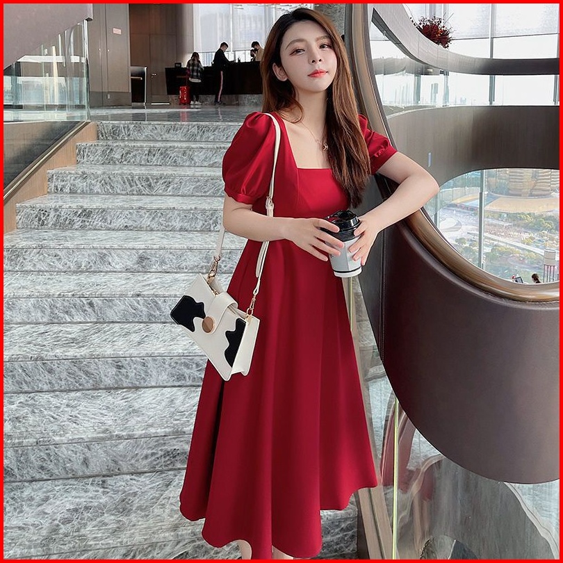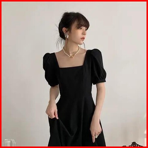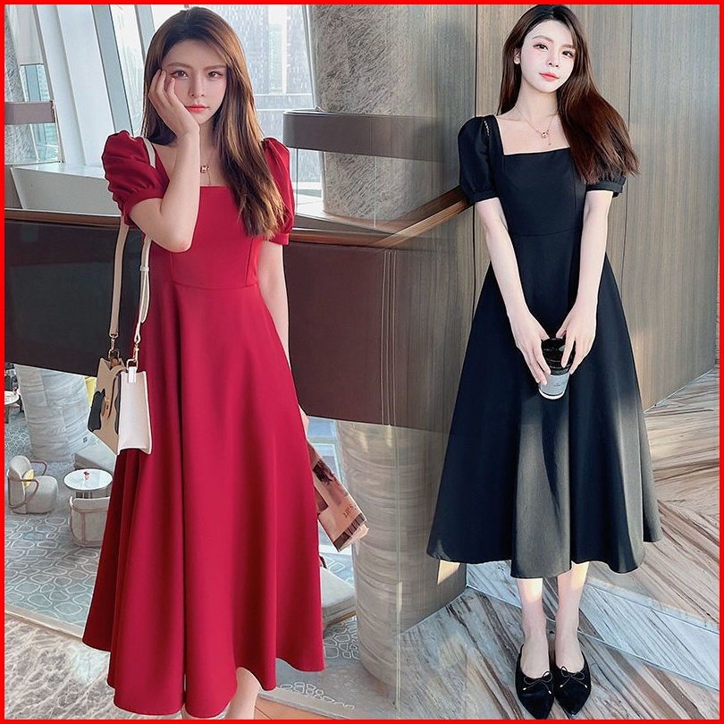 U Neck Dress Wanita Elegan Dress Korean Party Dress Square Neck