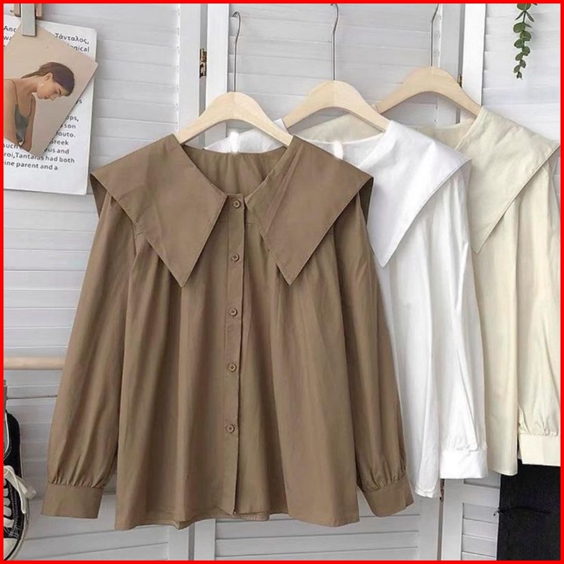 Nemmo Shirt Korean Style Atasan Wanita Cotton Poplin Premium