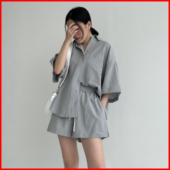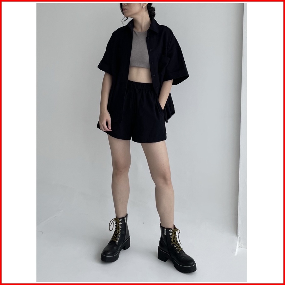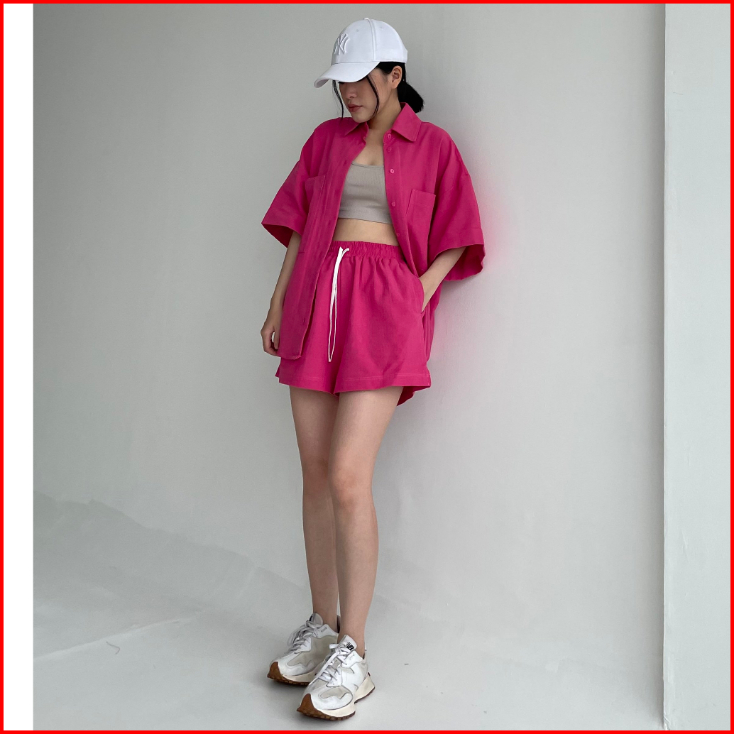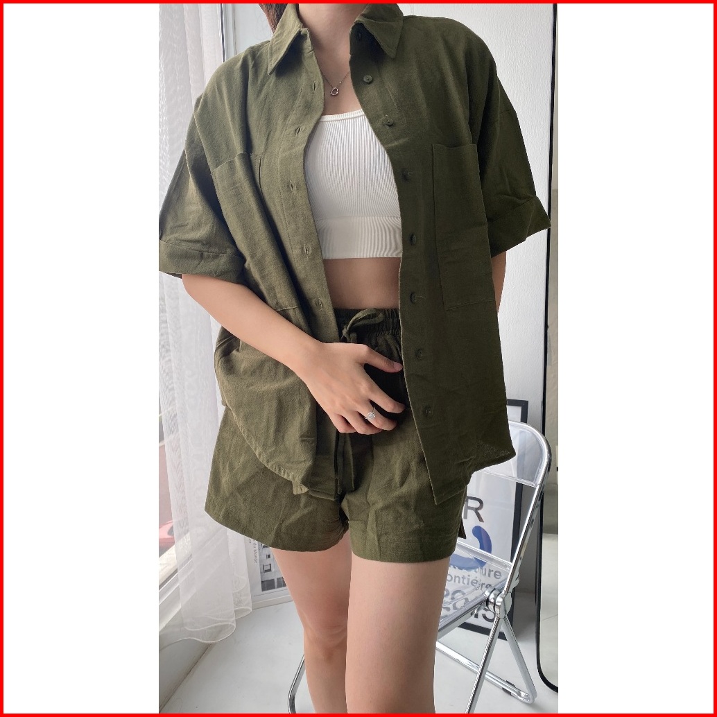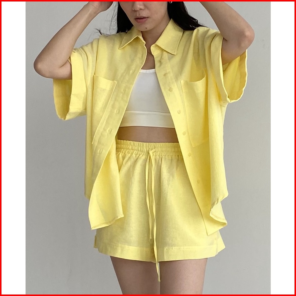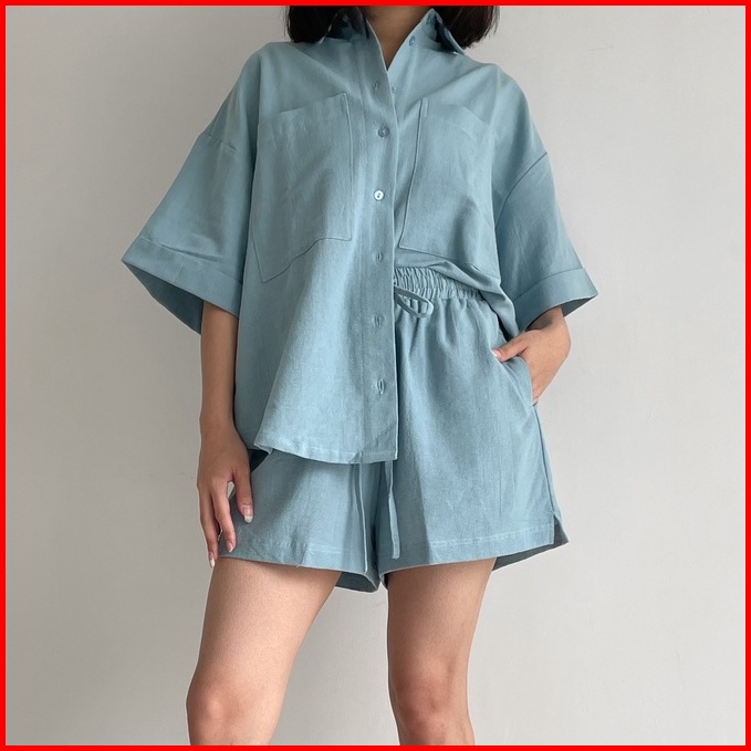 Peach Poppy Ginna Premium Linen One Set Celana Pendek - Setelan Wanita
