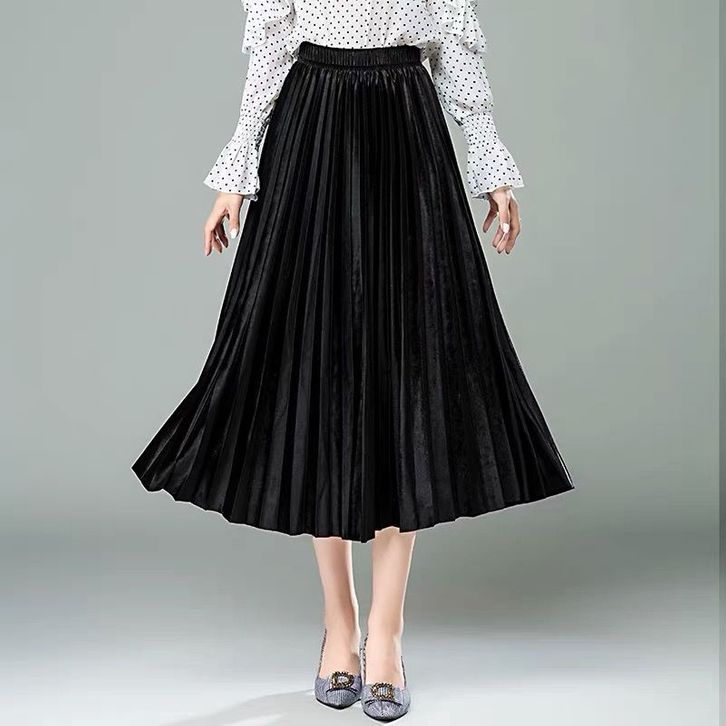 Rok Plisket Bludru Velvet 7/8 Premium Kekinian Tekstur Bahan Halus Lembut Glowing Rok Glossy