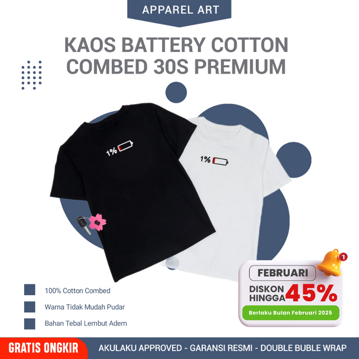 Kaos 1% Battery Tshirt Distro Cowok Dewasa Atasan Baju Lengan Pendek Basic Casual Katun Combed 30s S M L XL XXL