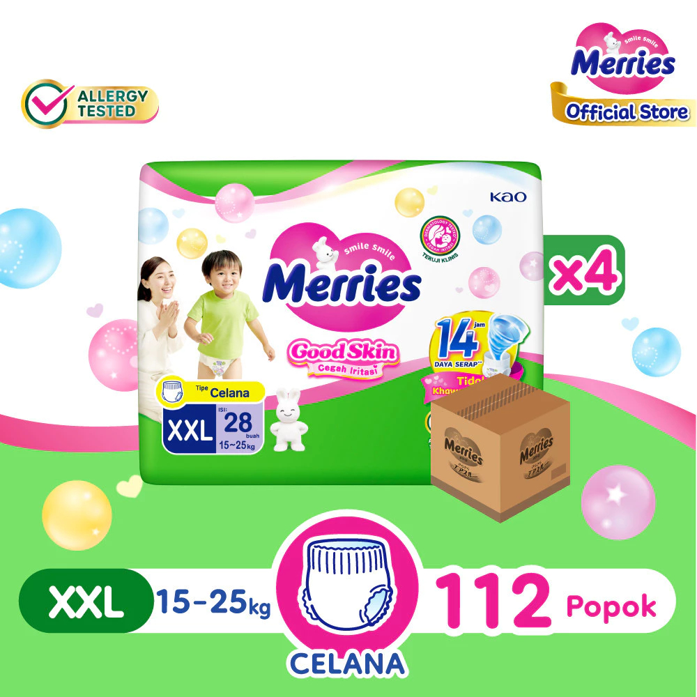 Paket 4 Ball Merries Pants Good Skin Popok Celana XXL28 pcs ( 1 Carton )