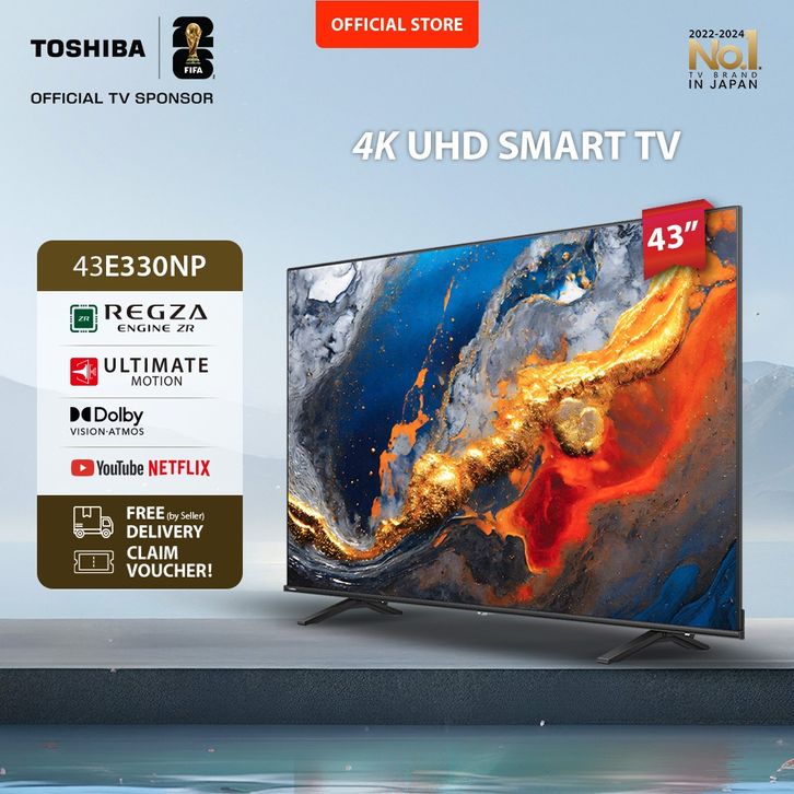 TV TOSHIBA SMART DIGITAL TV 55 INCH 4K UHD E330NP 50 43 32 IN DOLBY VISION GAMING ATMOS MEMC VRR ALLM GAME DECK WIFI