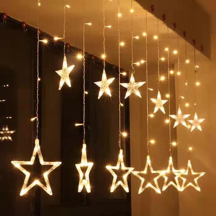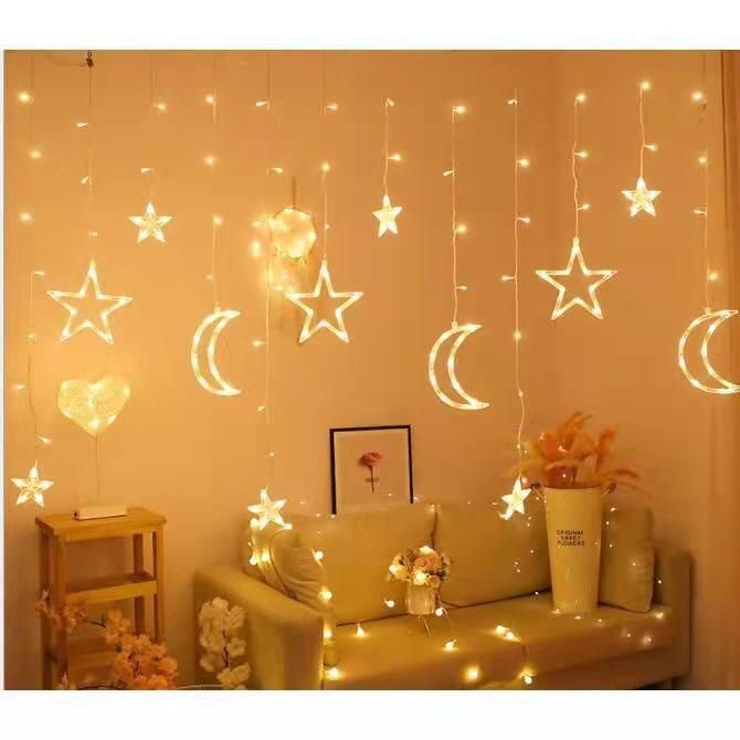 Lampu Natal Tirai Bintang BulanLED Tumblr Light Tirai | LED Star Curtain Light Wedding Warmwhite