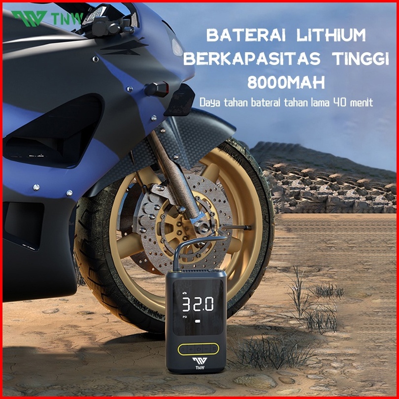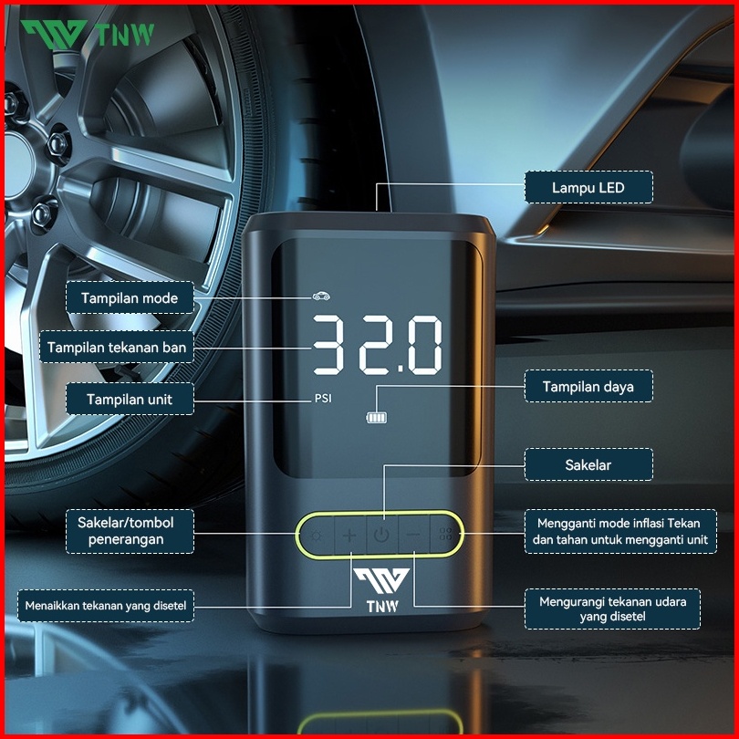 Tnw Ci10 Car Air Pump Tire Inflator Portable Pompa Ban Mobil Dan Motor Mini Pompa Angin Elektrik 8000mah