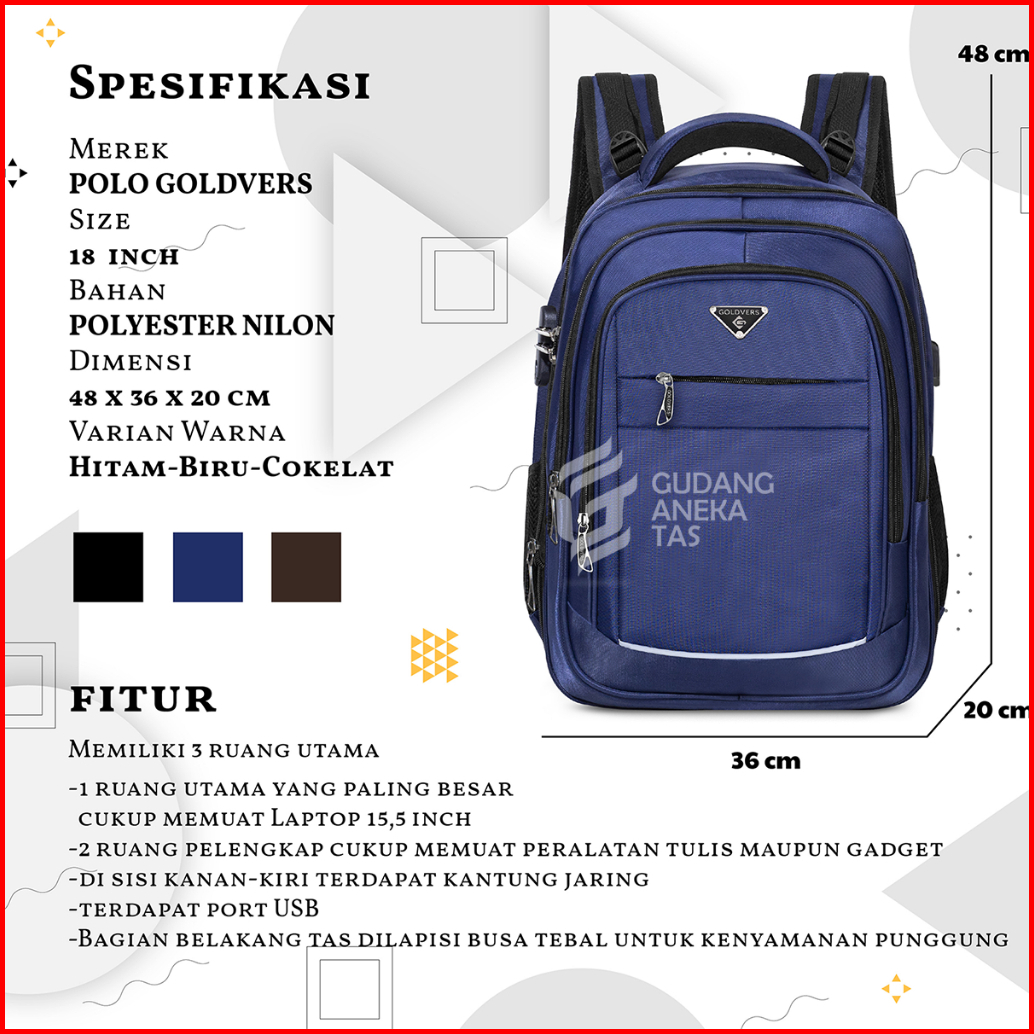 Goldvers Tas Ransel Anak Sekolah Kuliah Kerja Import Backpack Free Rincover Dan Kabel Usb