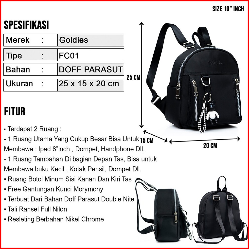 Goldies Tas Ransel Backpack Fashion Wanita Korea Original Tas Batam Perempuan Waterproof Import