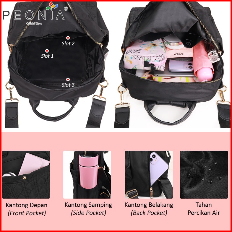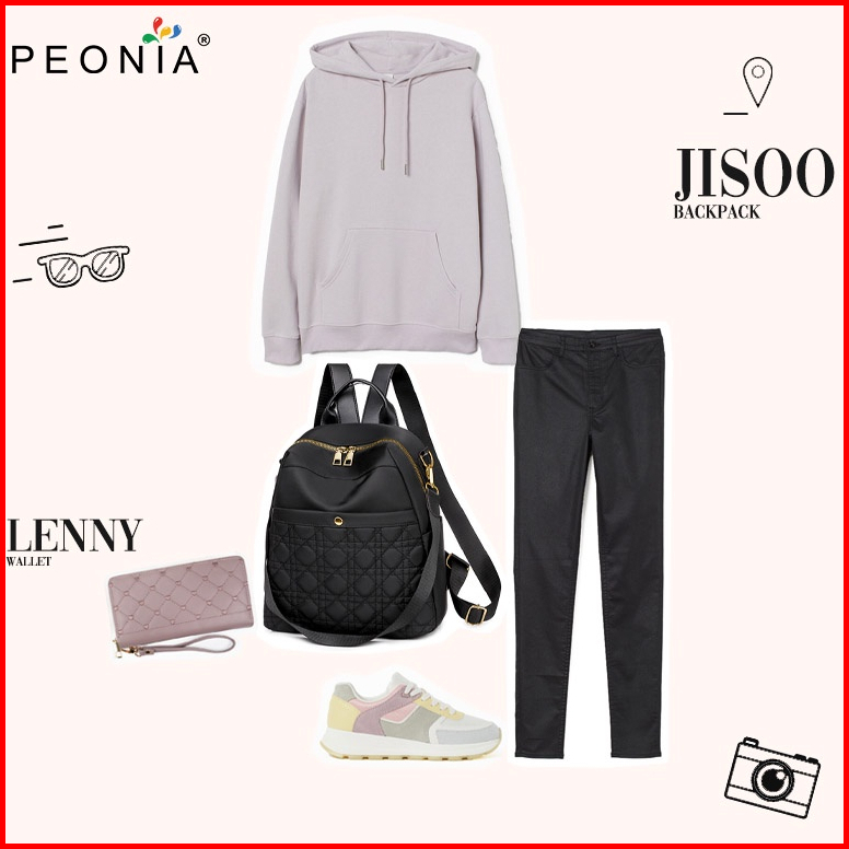 Peonia Pna Jisoo Water Resistant Tas Ransel Wanita Import Korean Style Punggung Kantor Kerja Sekolah Kuliah Outdoor Tren
