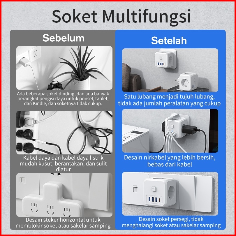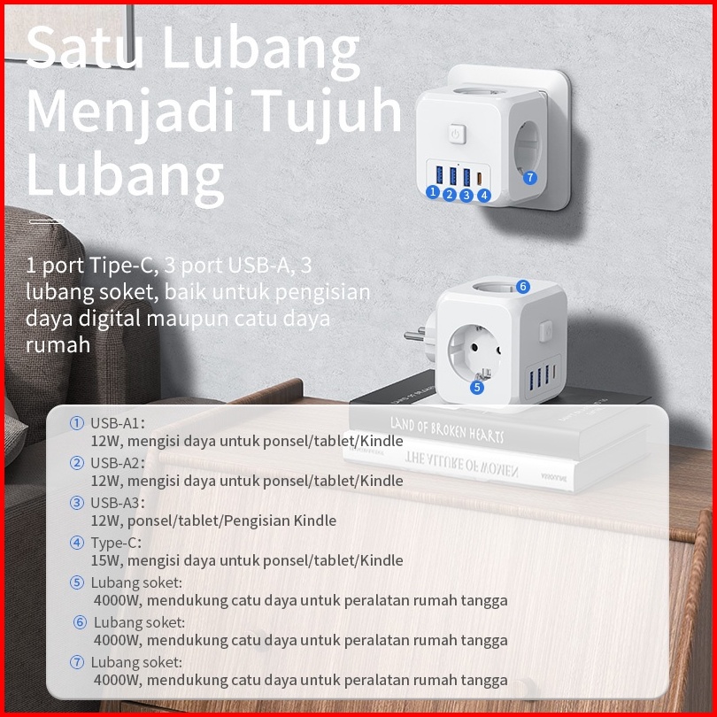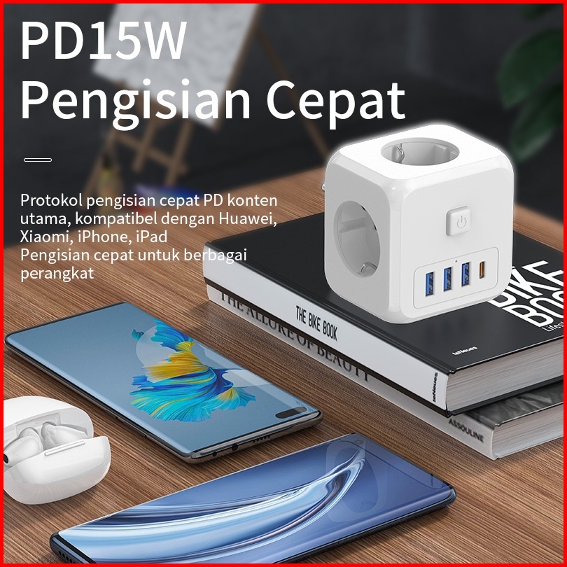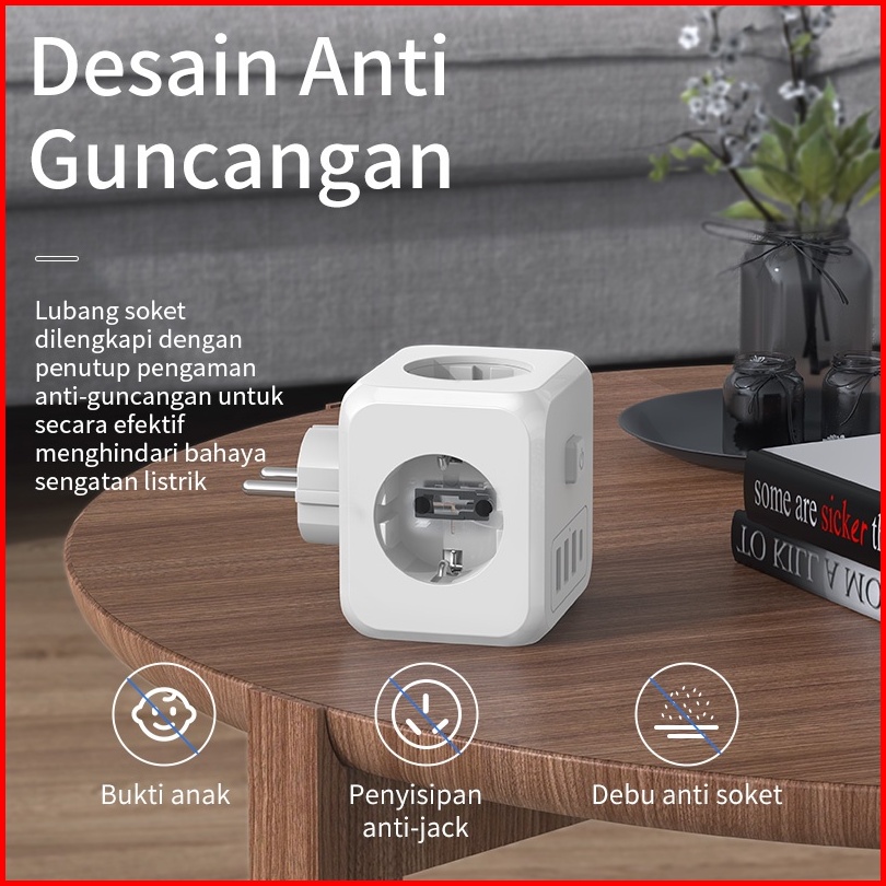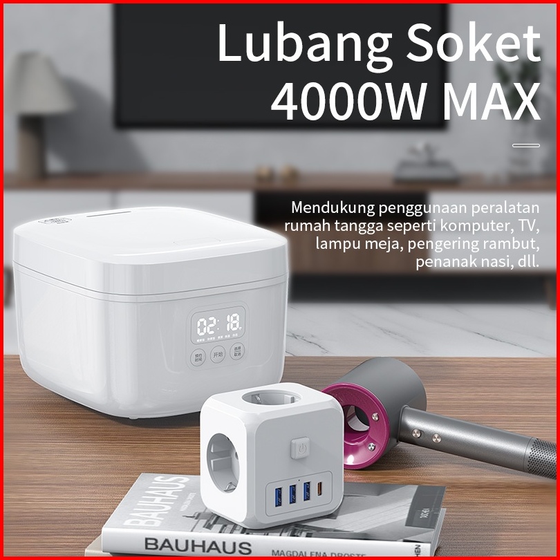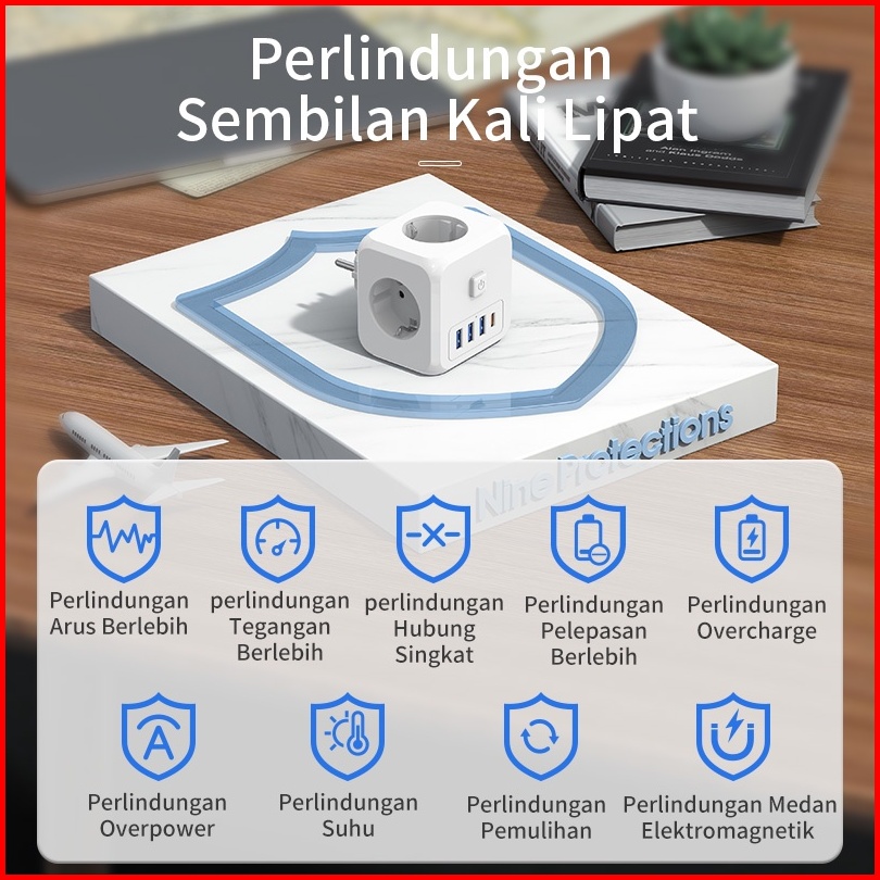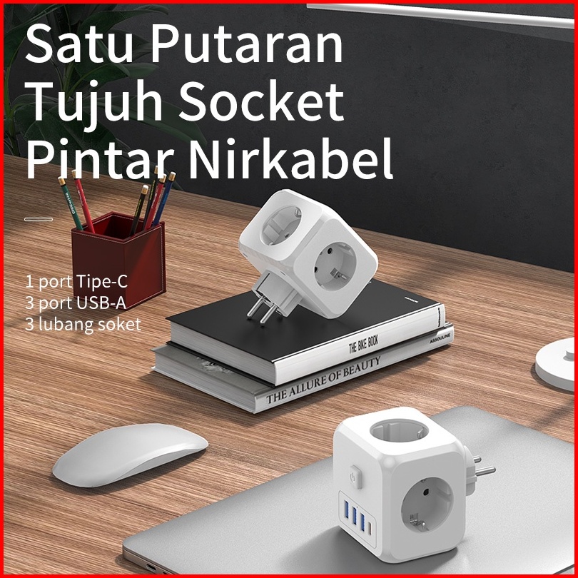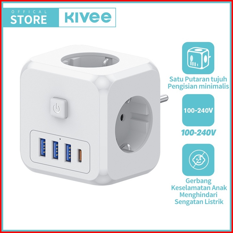 Hot Kivee Stop Kontak Colokan Listrik Kubus 7-in-1 Usb Type C Fast Charging Daya Max 4000w
