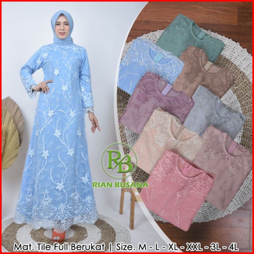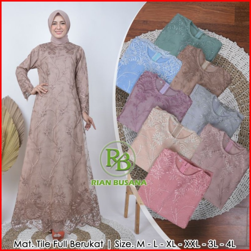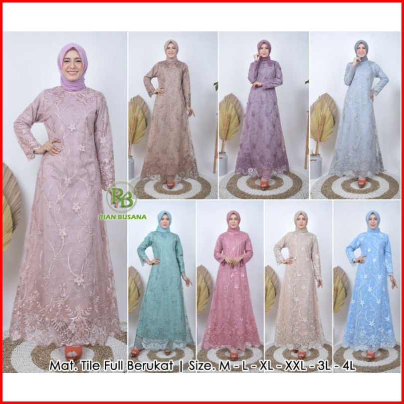 Dress Full Brukat Gamis Tulle Gamis Lebaran Dress Kekinian