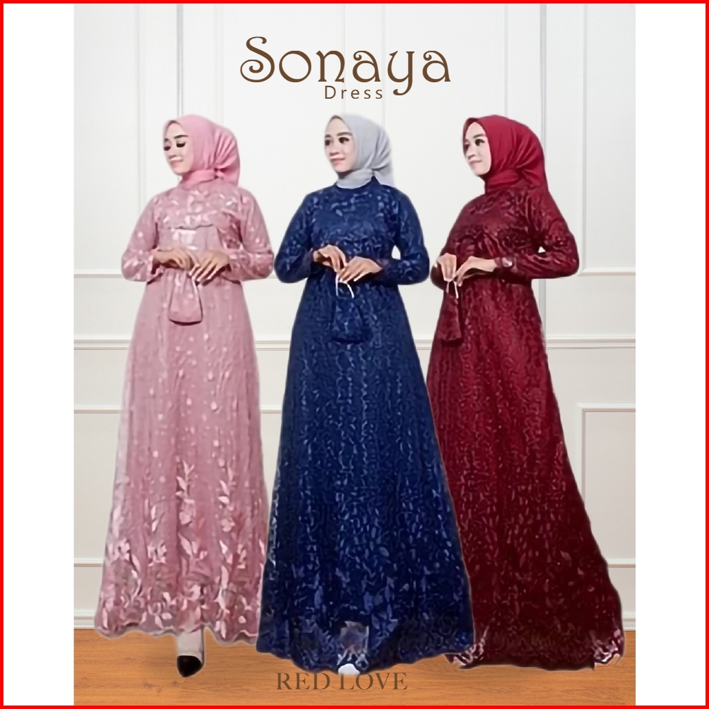 Redlove - Gamis Baju Muslim Sonaya Tile Mutiara Brukat