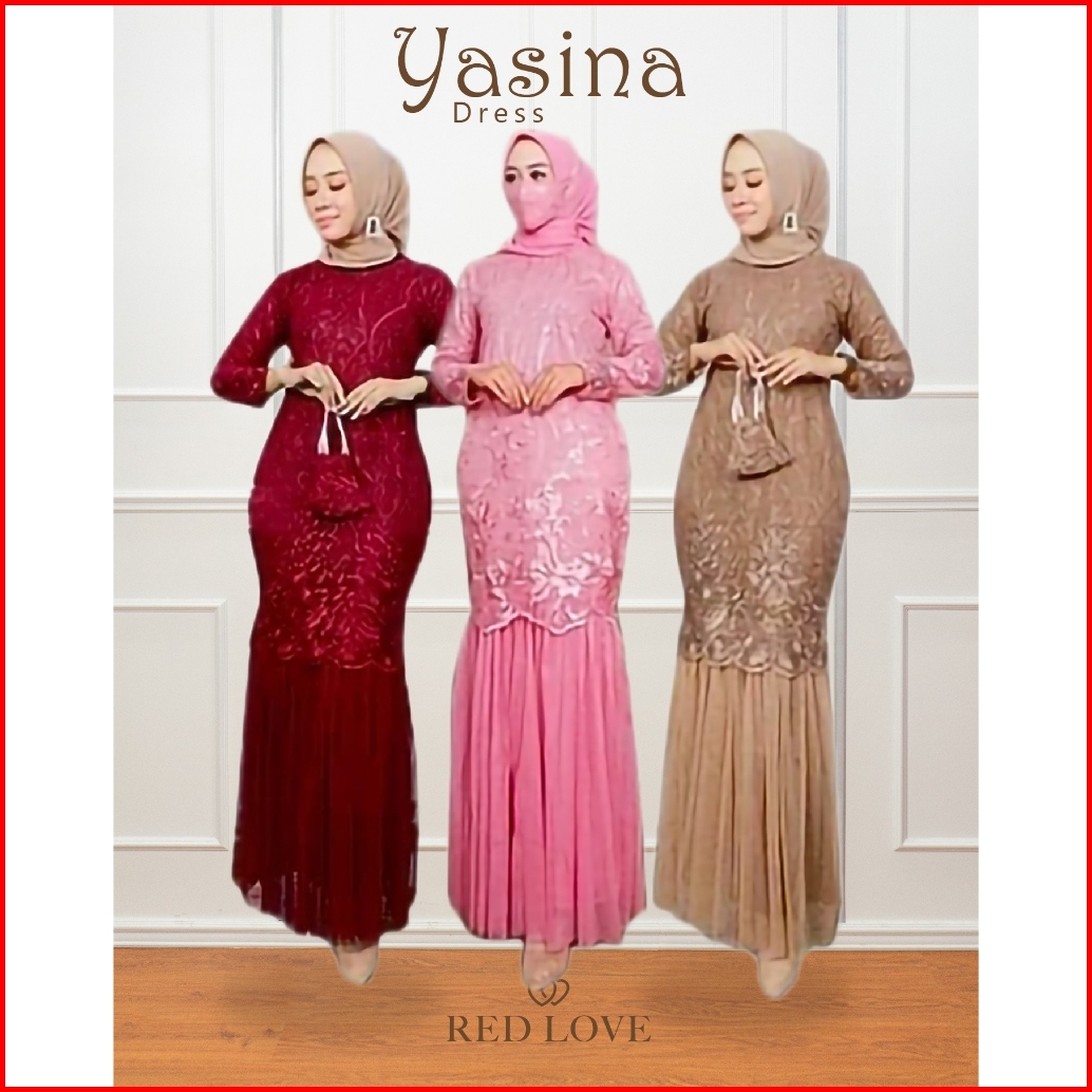 Redlove - Gamis Baju Muslim Dress Maxi Yasina Brukat Tulang Premium 2