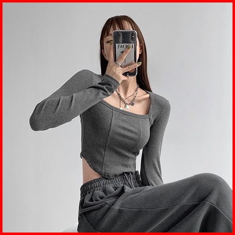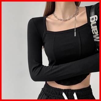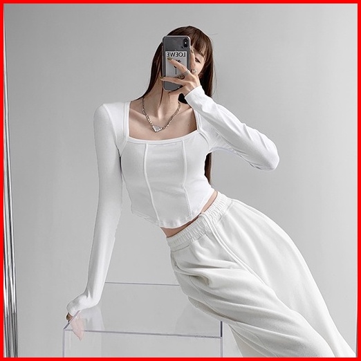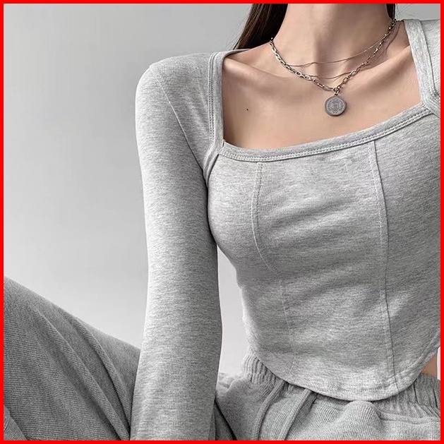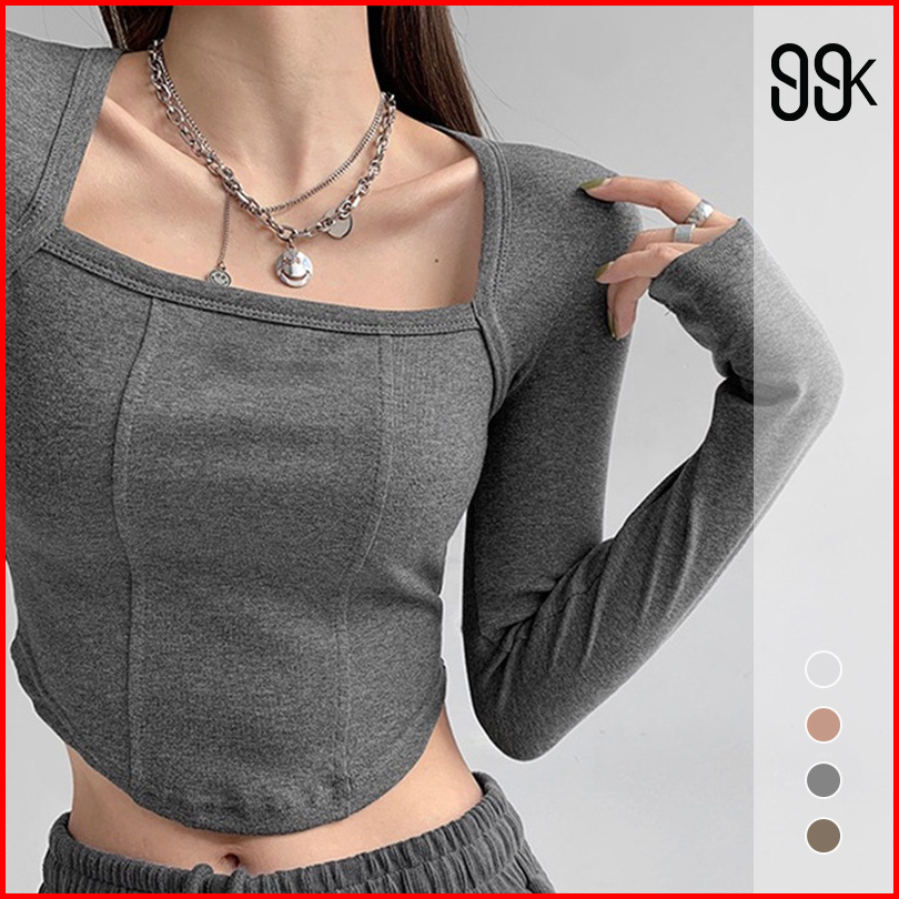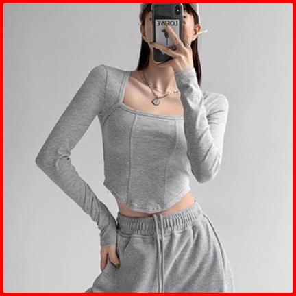 Premium Square Neck Long Sleeve Crop Top 7307 S M L
